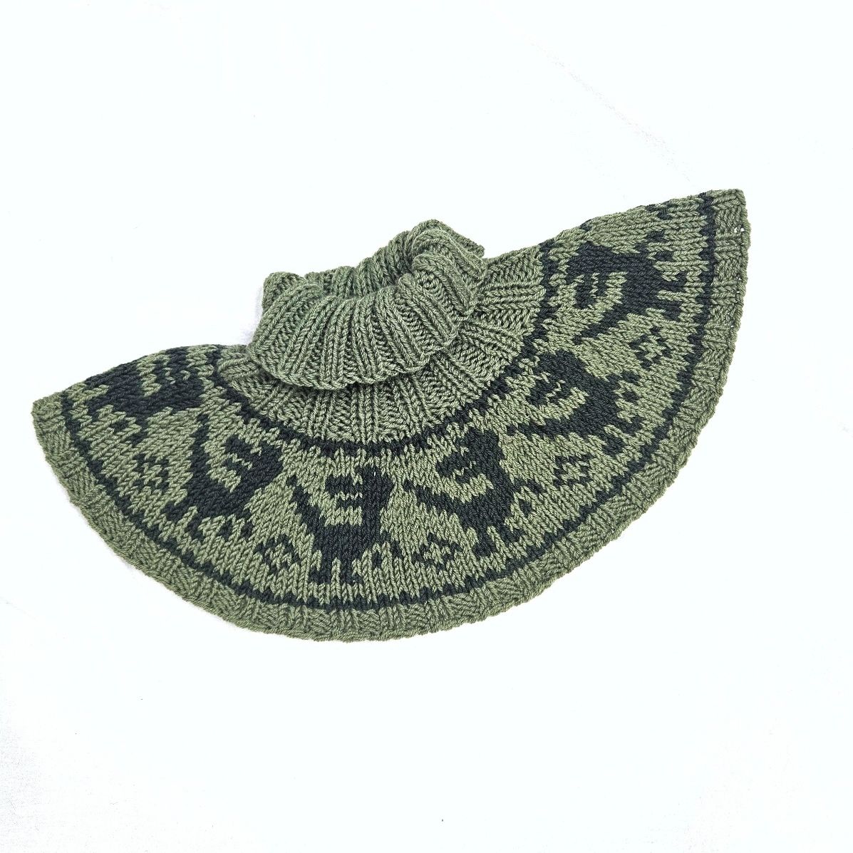 Raptor Pack-halsen fra Tonje i Oslo er en raskstrikket hals med brettekant og dekorativ dinosaurbord rundt skuldrene — strikkes ovenfra og ned og fås i både barne- og voksenstørrelser.