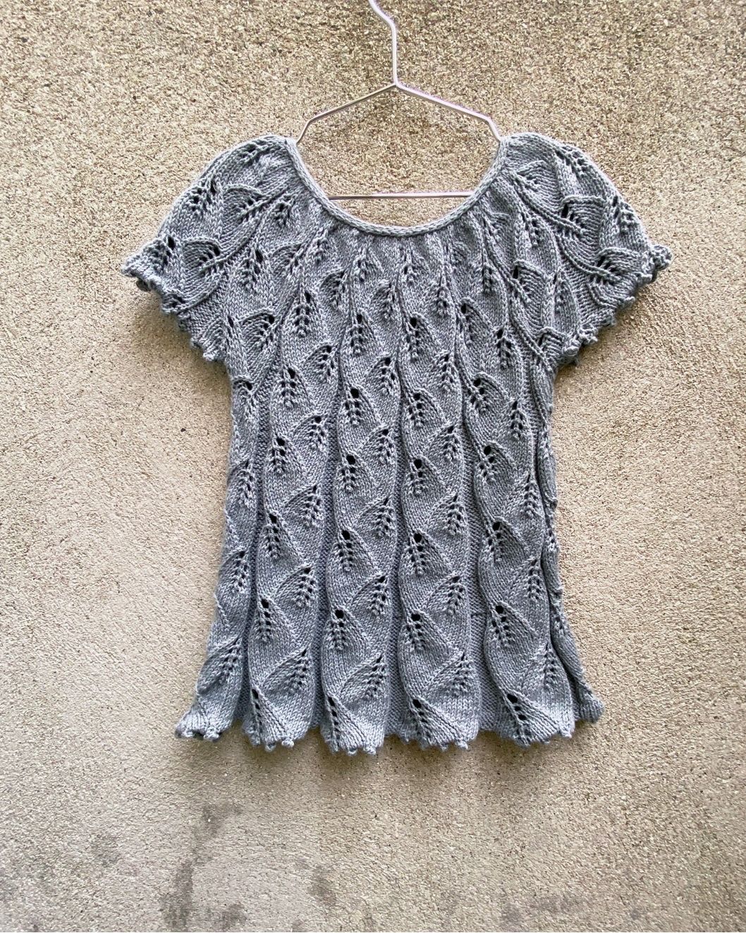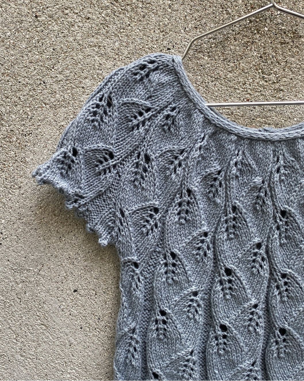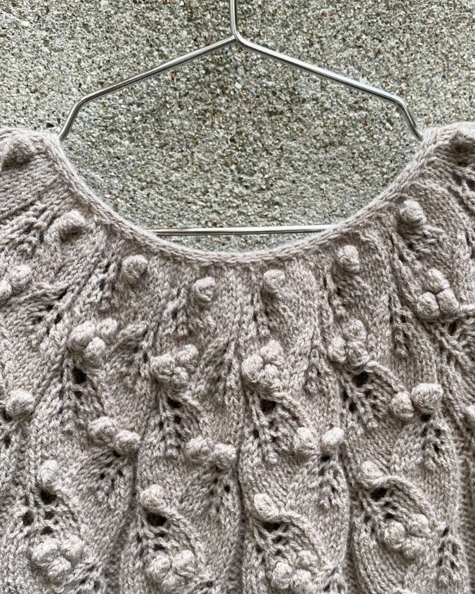 Det strikkes bær på bærestykket, som etterhvert blir færre og færre. Bærene kan også droppes. Kjolen kan strikkes med 3/4 lange ermer eller uten ermer.