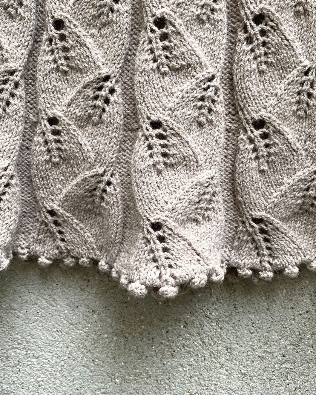 Strikkefasthet: 28 m x 40 rekker = 10 x 10 cm i mønster på pinne 3 mm.