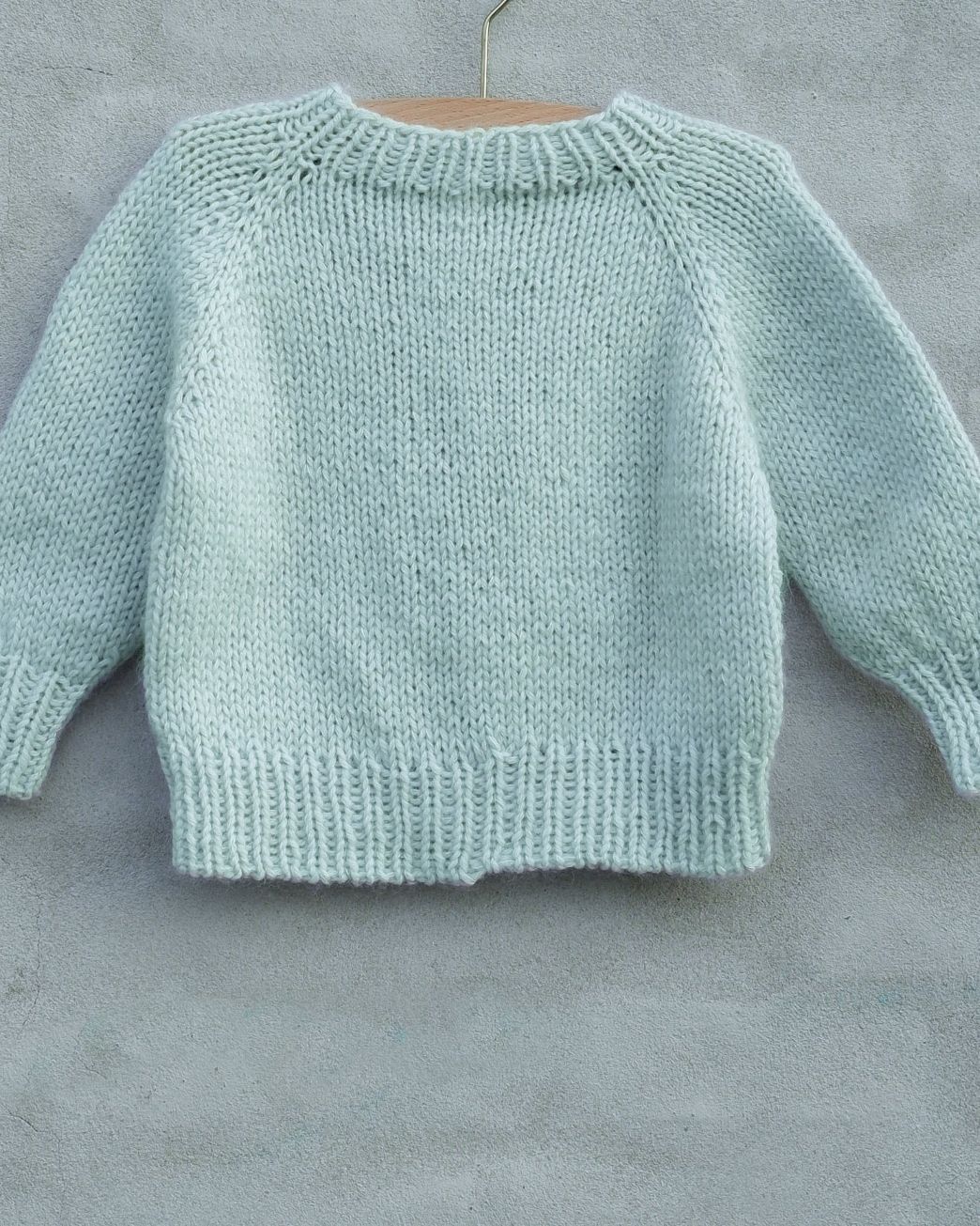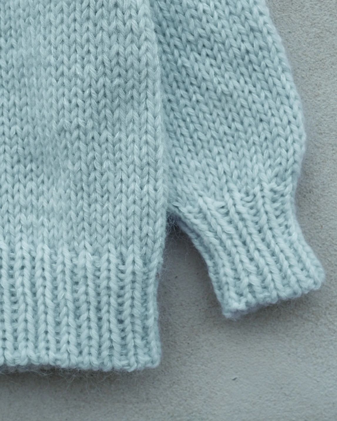 Genseren på bildet er strikket i Heavy Merino og Soft Silk Mohair – Isblå