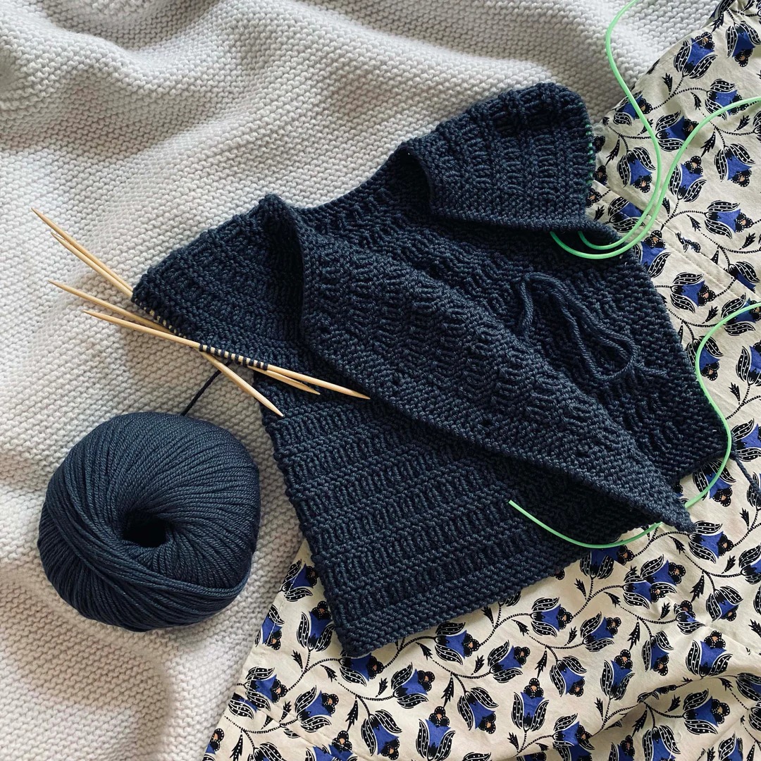 Ble ett skjønt plagg til baby..Sunday ogmorsom å strikke