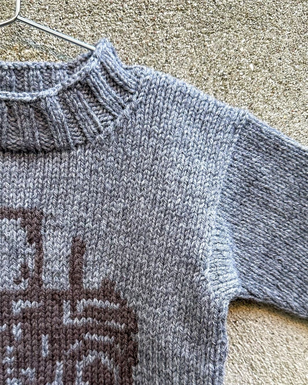 Genseren på bildet er strikket i Heavy Merino - Regnvejrsdag (bunnfarge) og