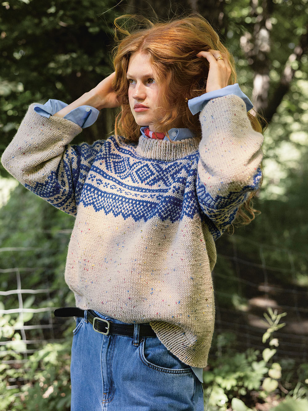 Genseren kan strikkes ovenfra og ned eller nedenfra og opp. Det strikkes mønster etter diagram frem og tilbake på for- og bakstykket. Resten av genseren strikkes rundt i bunnfarge. Ermene strikkes rundt med mønster etter diagram helt øverst.