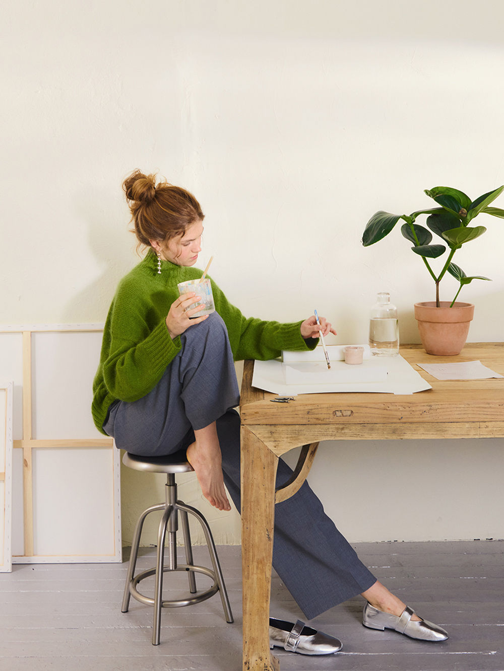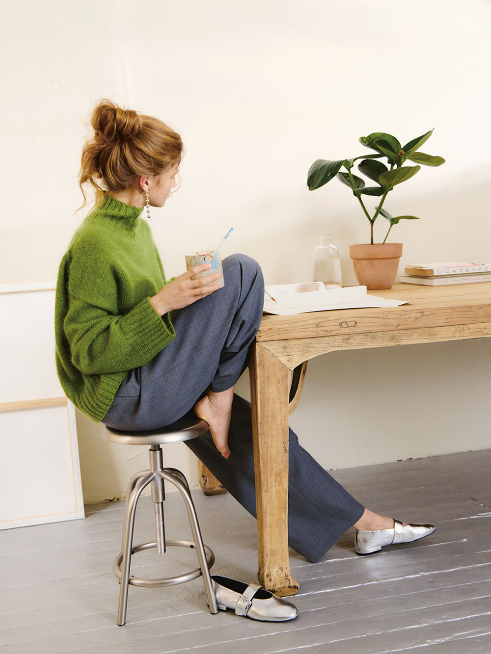 Genseren strikkes ovenfra og ned med 2 tråder Sunday eller 1 tråd Sunday sammen med 1 tråd Tynn Silk Mohair.