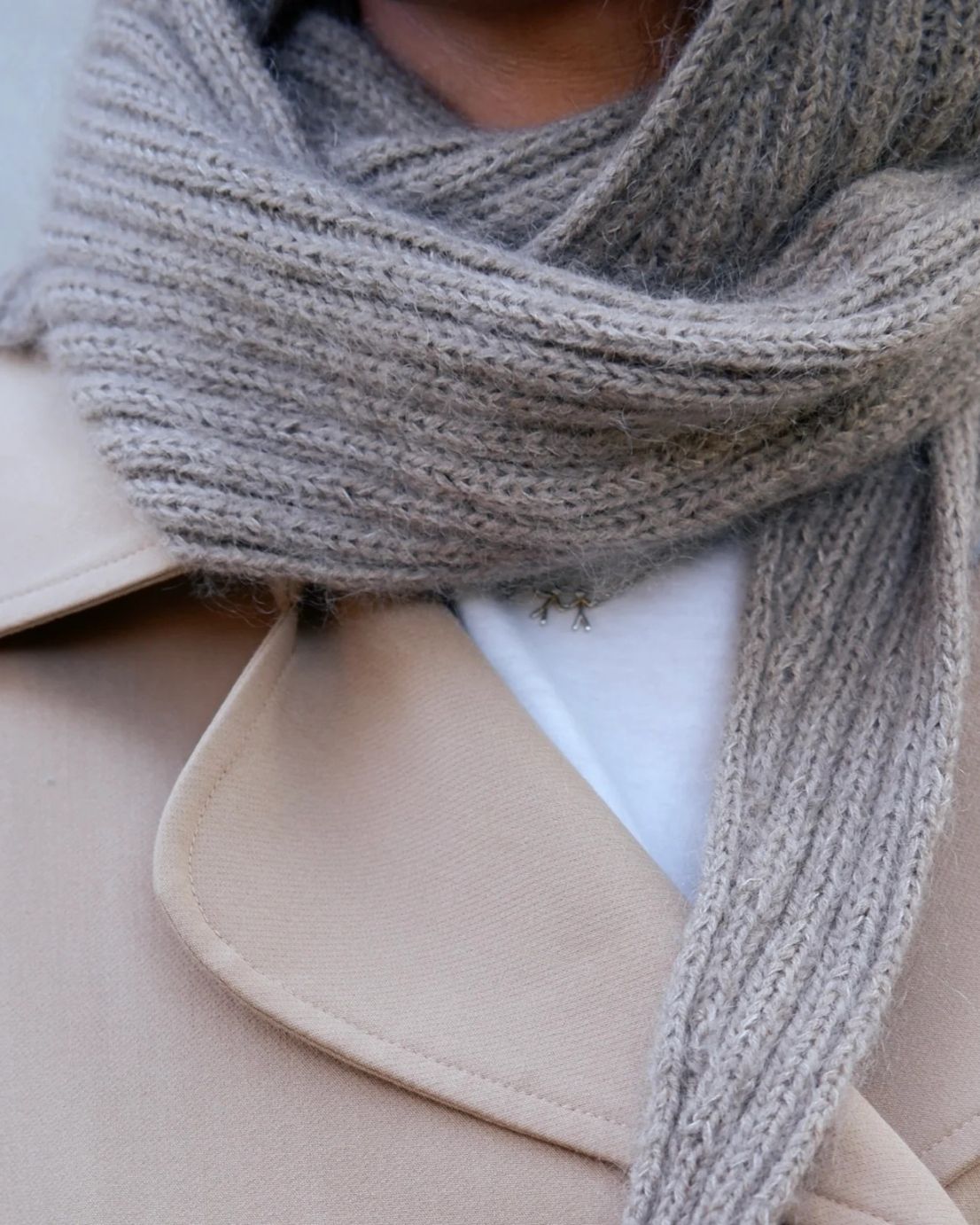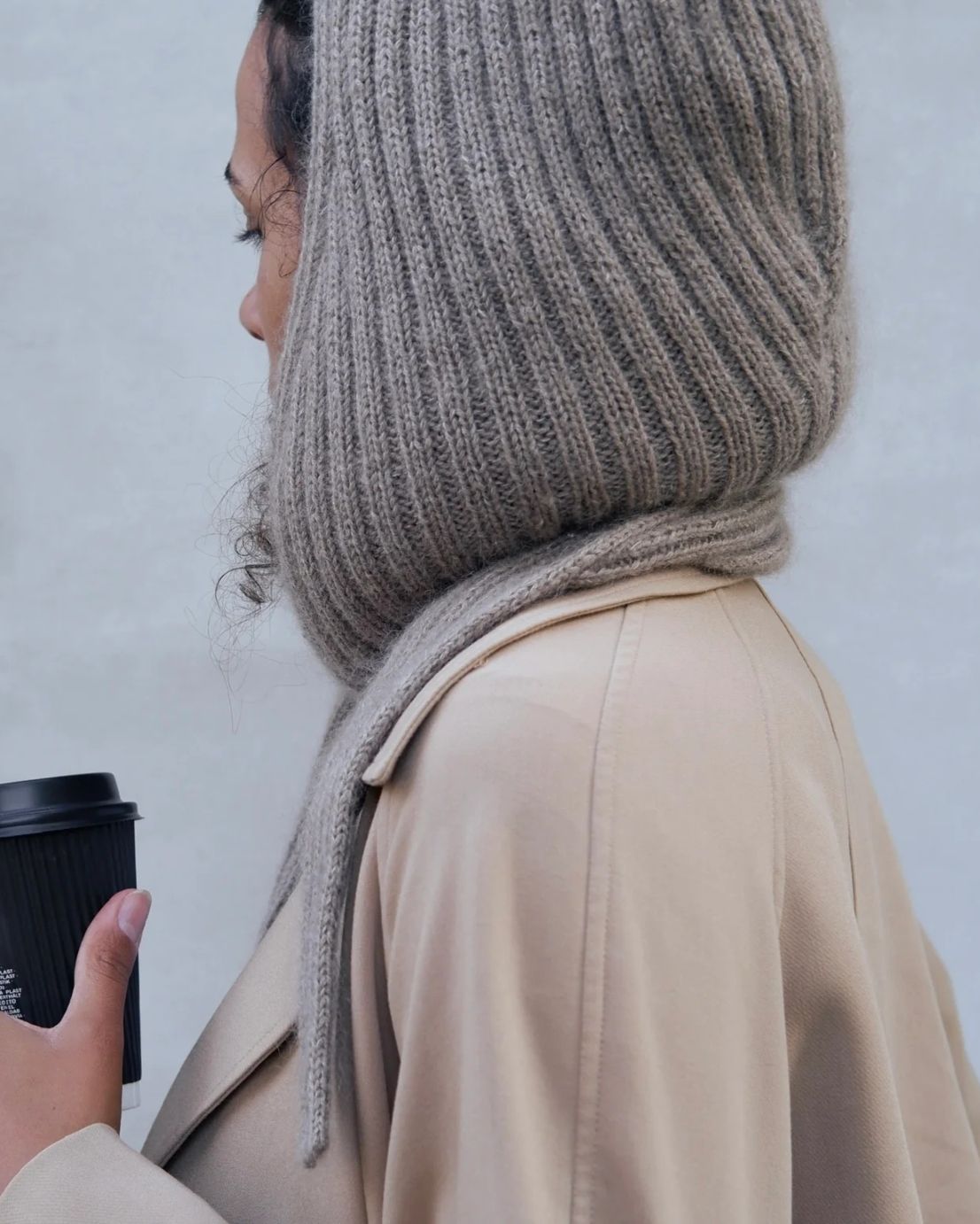Alex Hætte er et sjal med hette, som strikkes i et enkelt 2x2 ribbmønster.