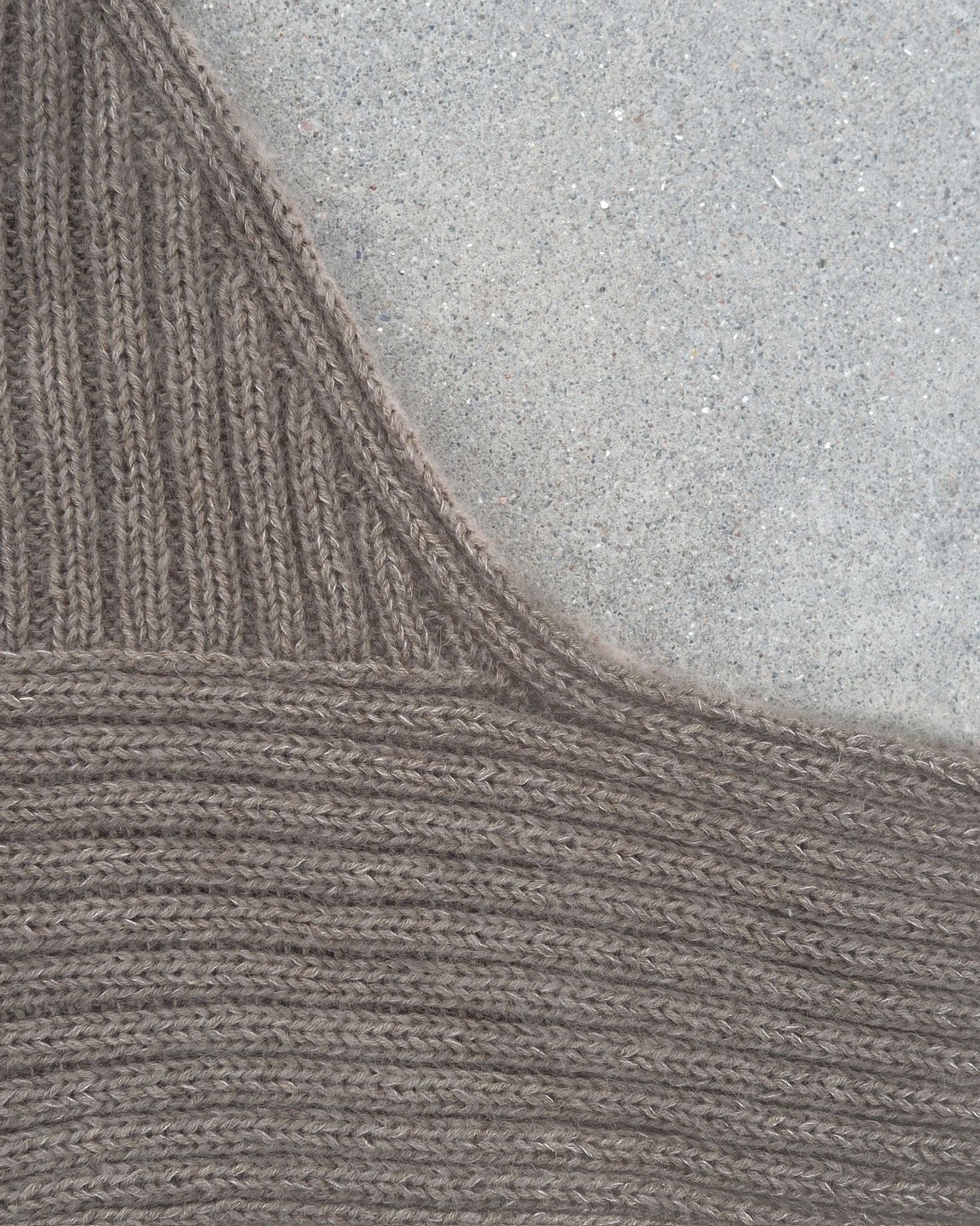 Garn: 1 tråd Knitting for Olive Merino (250 m/50 g) holdt sammen med 1 tråd Soft Silk Mohair (225 m/25 g) eller 1 tråd Compatible Cashmere (150 m/25 g)