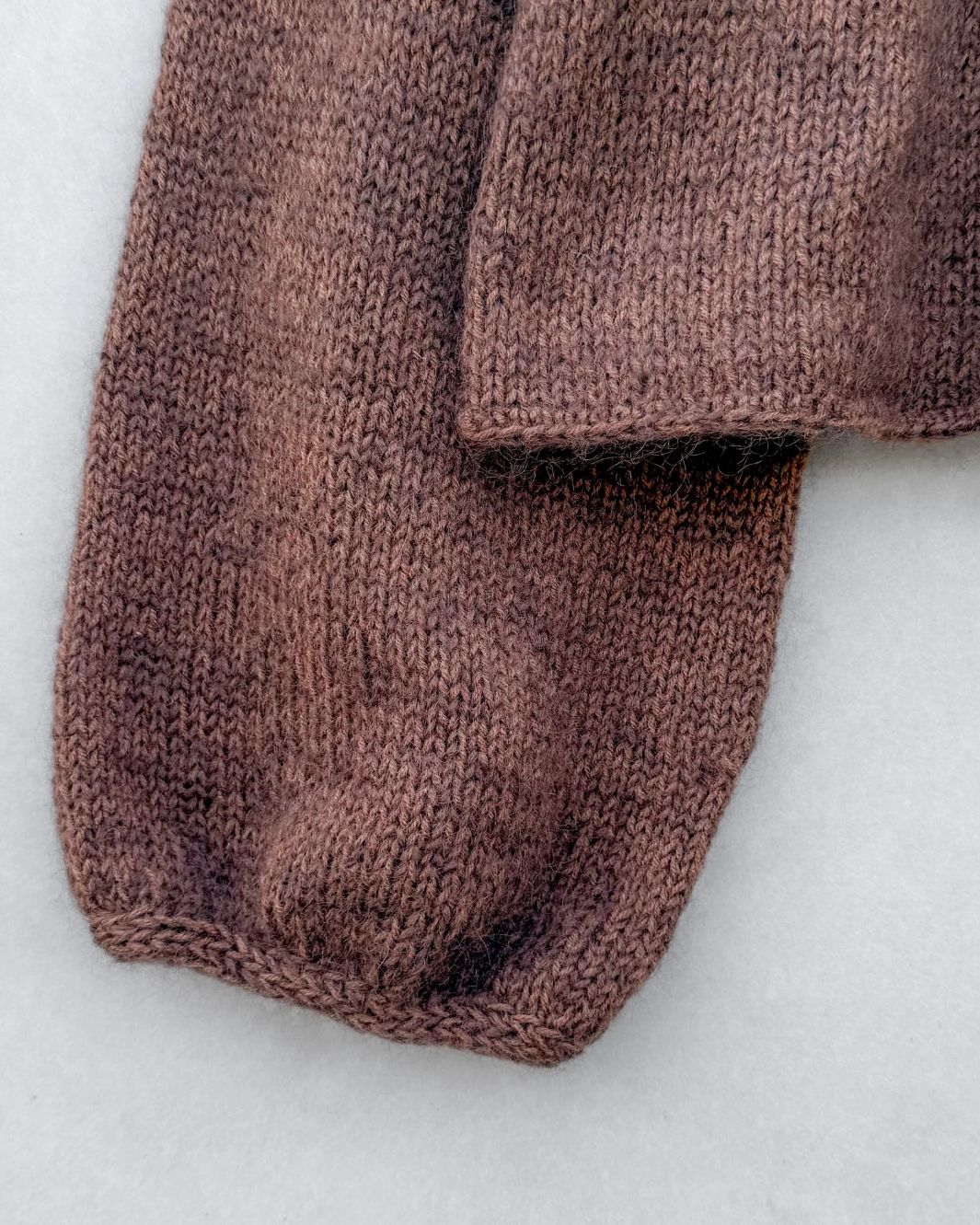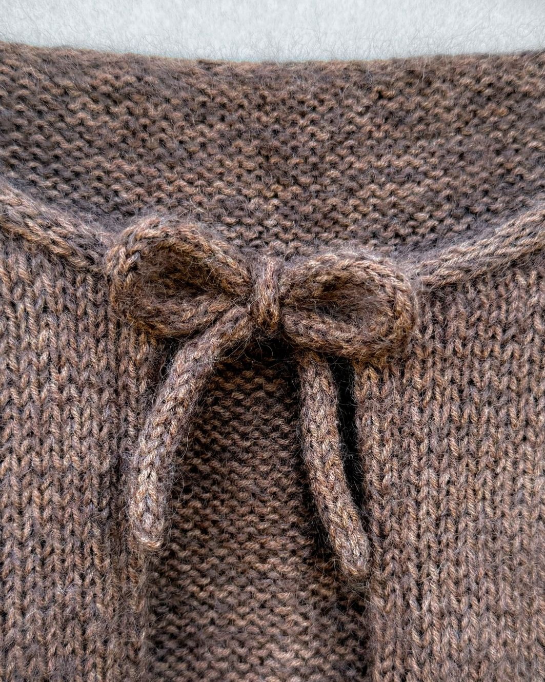 Modellen på bildet er strikket i Merino – Mørk Cognac og Soft Silk Mohair - Chokolae