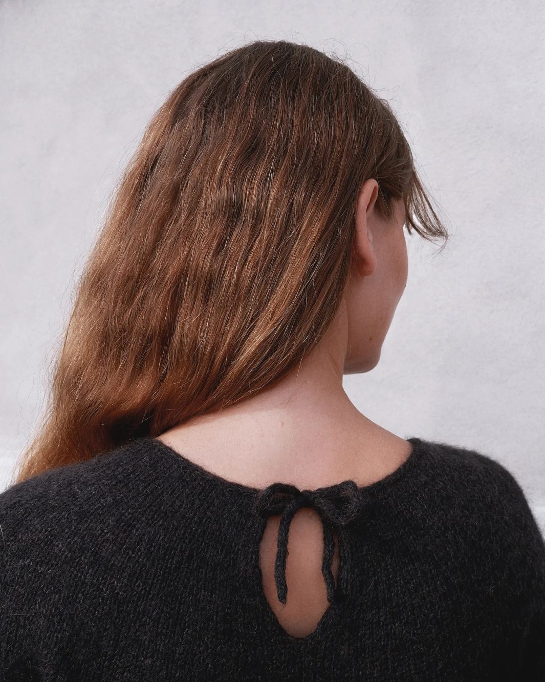Modellen på bildet er strikket i Merino, Lakrids og Soft Silk Mohair Skifergrøn