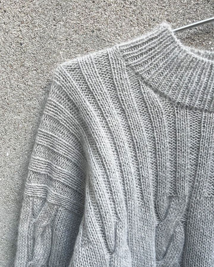 Cobra Sweater er en nyfortolkning av den klassiske flettegenseren (snoningssweater), hvor fletter og ribb er kombinert på en utradisjonell måte. Genseren har en løs passform og vide ermer.