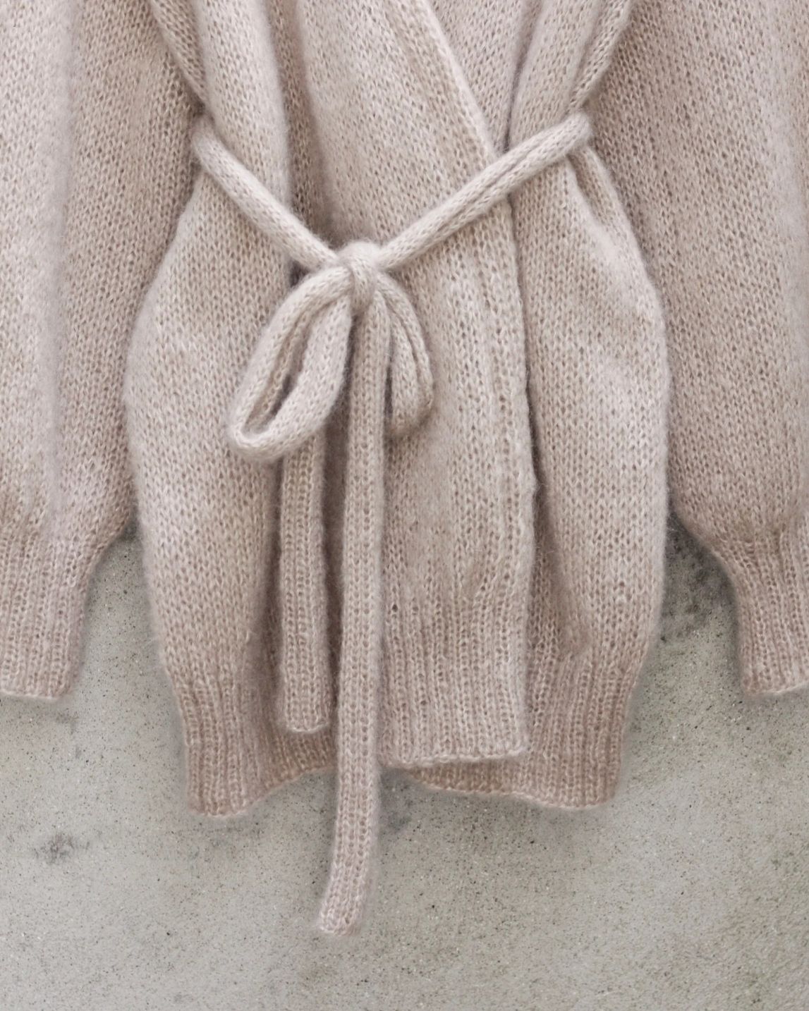 Garn: 3 tråder Knitting for Olive Soft Silk Mohair, løpelengde ca. 225 m / 25 g Cardiganen på bildet er strikket i Knitting for Olive Soft Silk Mohair - Marcipan Garnforbruk: 375 (400) 425 (475) g // 15 (16) 17 (19) nøster