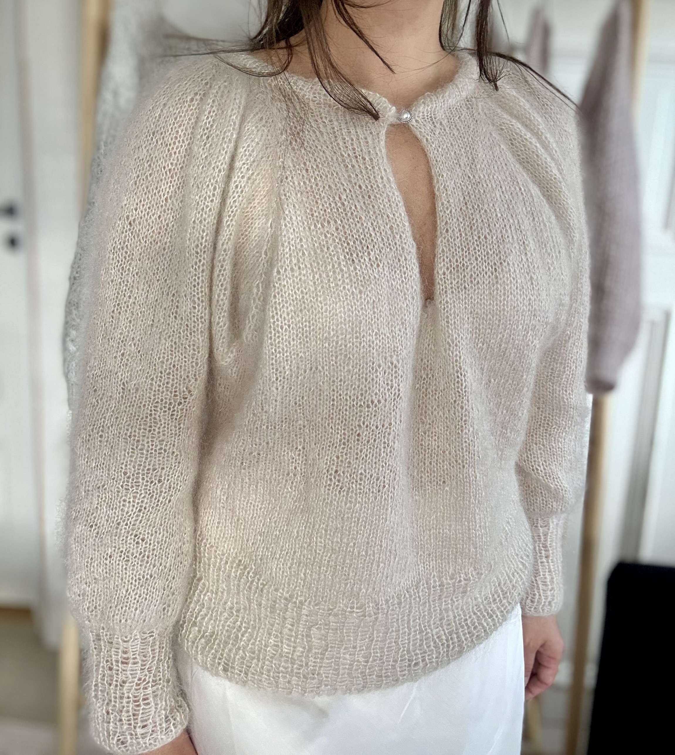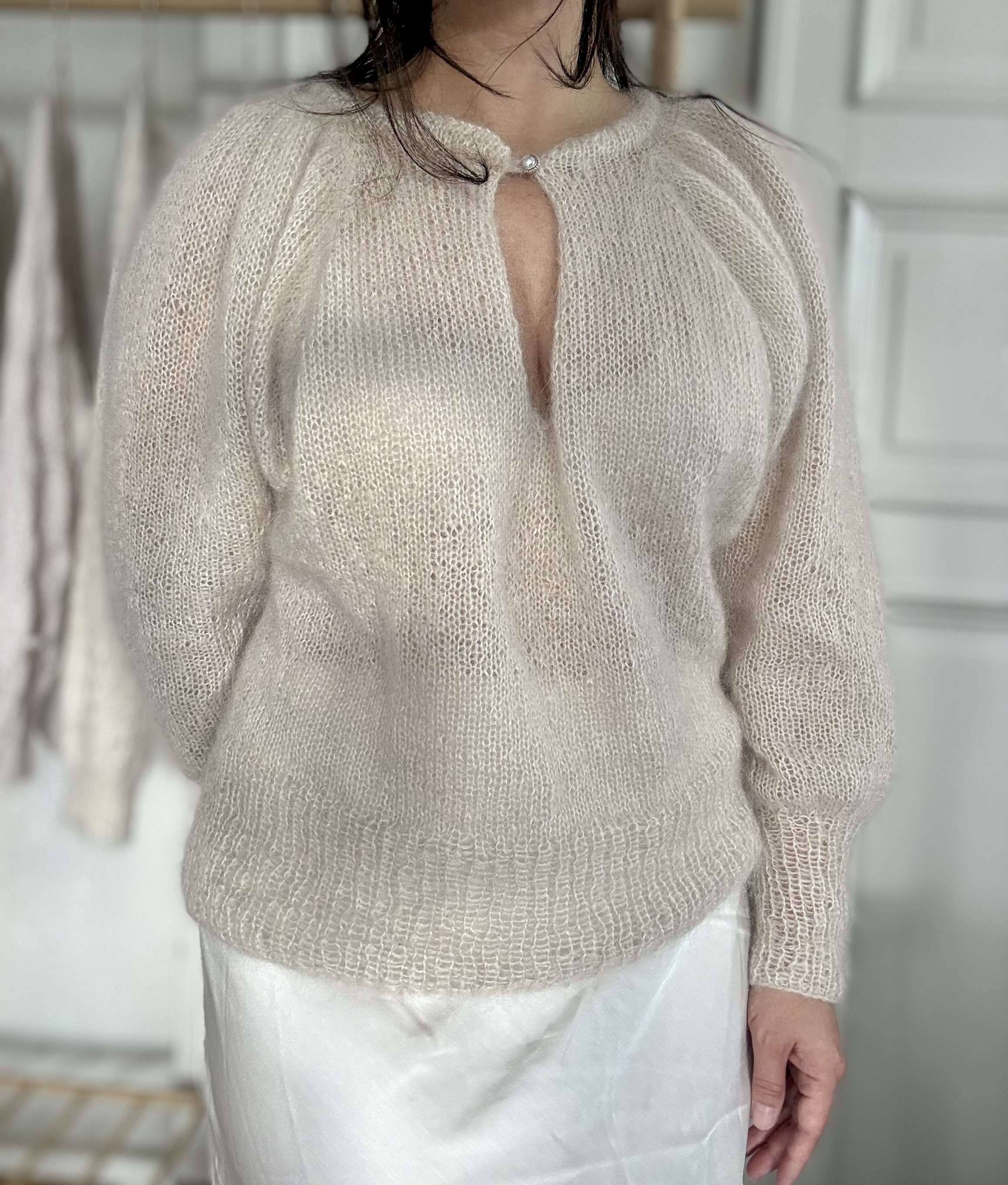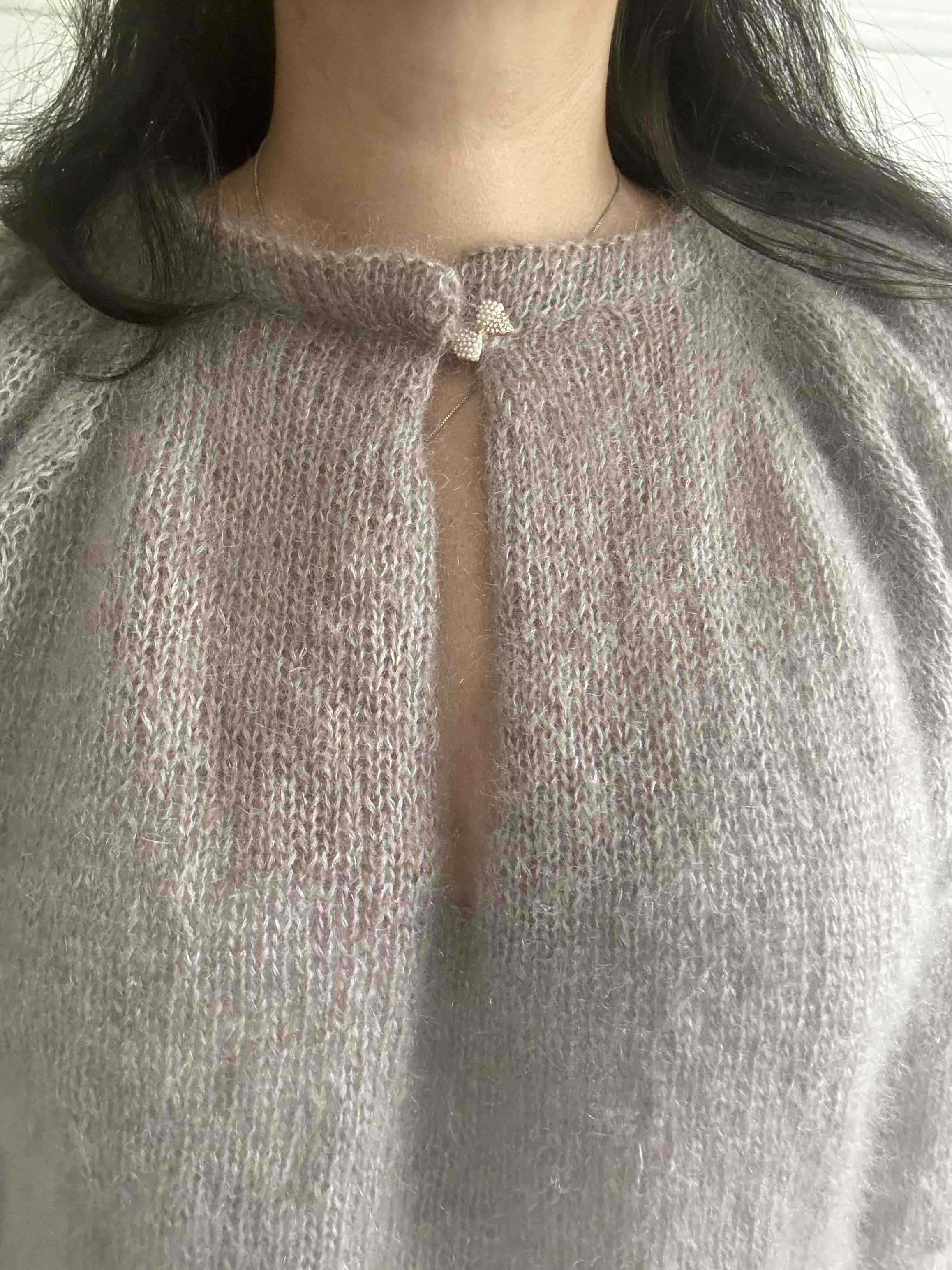 tilbake med med raglanøkninger før delene samles ved v-halsen og bolen