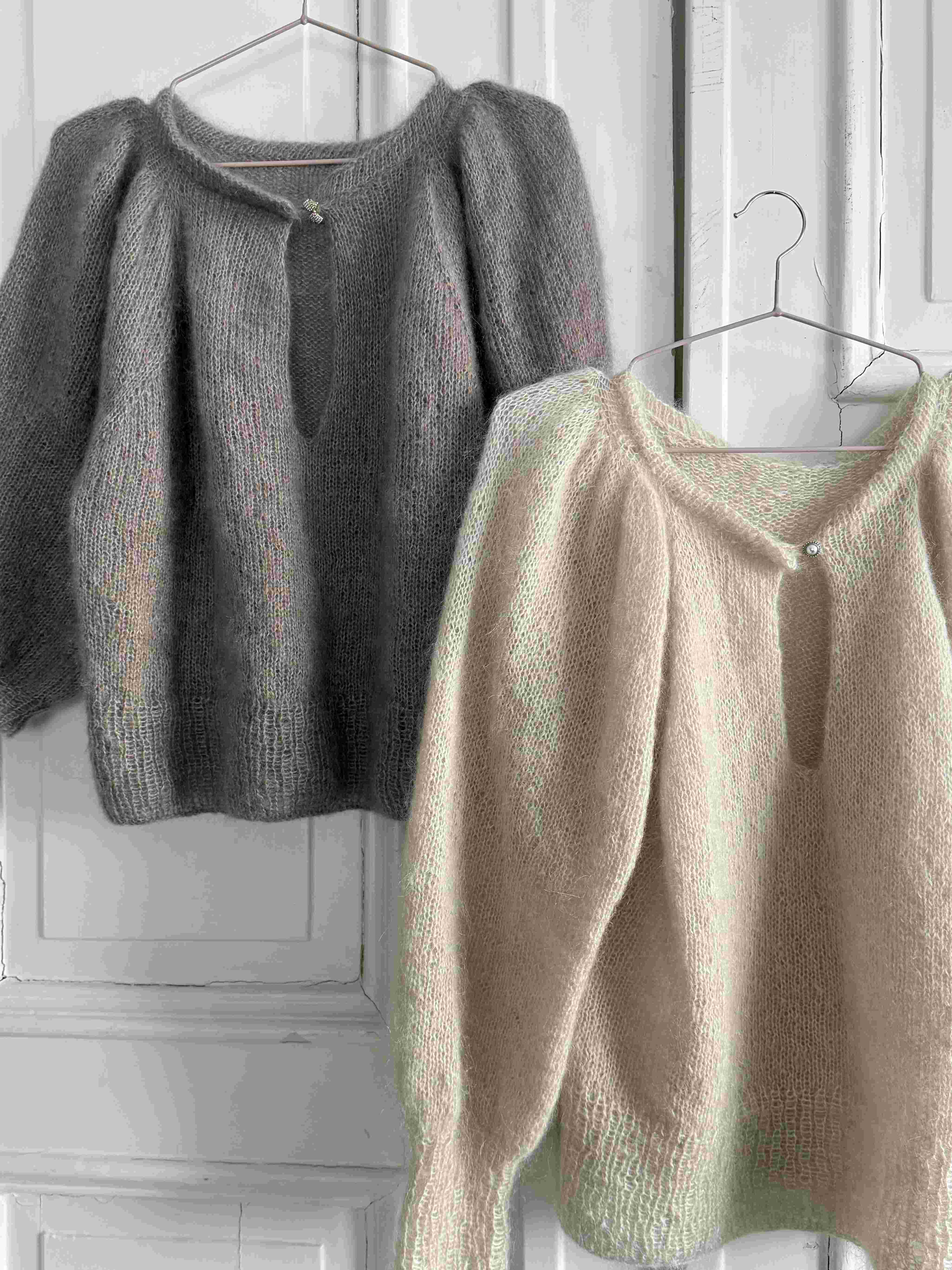 Strikkes ovenfra ned. Først strikkes hals og skulderpartiet frem og