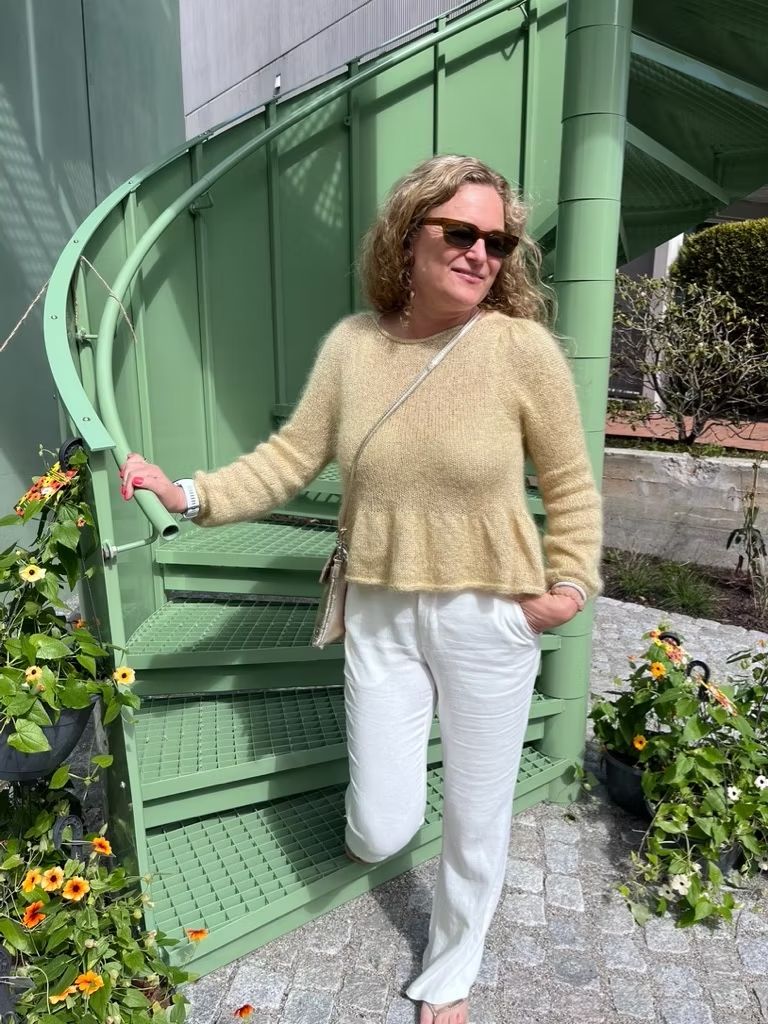 Strikk gjerne genseren i annet garn, som f.eks dobbel Tynn silk mohair. Eller bytt ut en tråd med Sunday eller Tynn Line fra Sandnes garn, eller gå for et garn med paljetter som Disco tråd fra Strikkefeber. Line fra Sandnes Garn er også et fint alternativ om du bare ønsker å strikke den i en tråd. Mulighetene er mange, men strikk gjerne en prøvelapp før du starter, for å sjekke at strikkefastheten stemmer. Merk at strikkefastheten er oppgitt etter at genseren er skyllet opp.