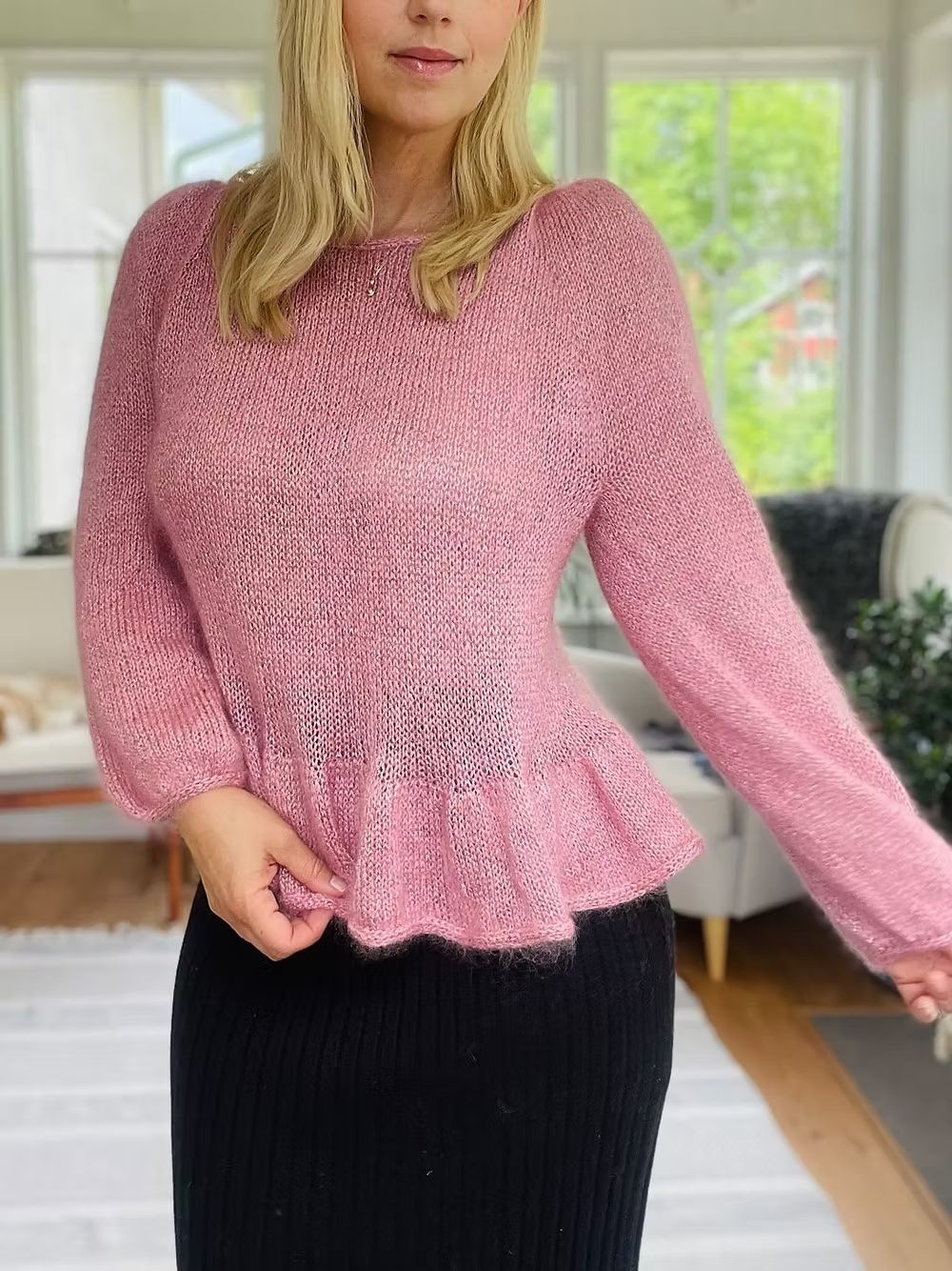 Glitterbluse er en søt og feminin genser strikket i de deilige garnene tynn silk mohair og effektgarn for å få litt glitter.