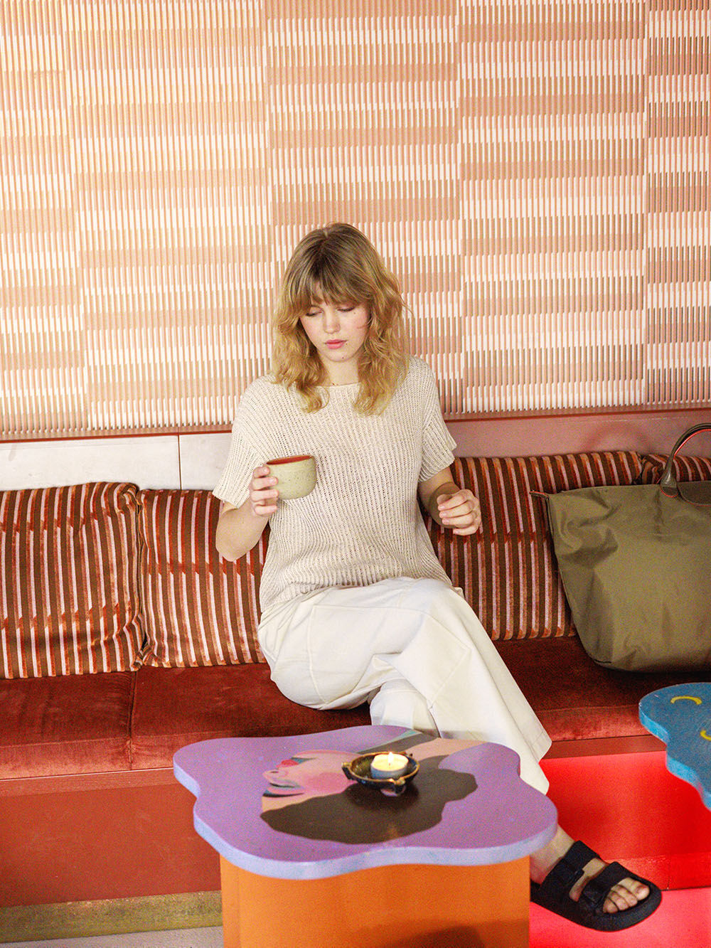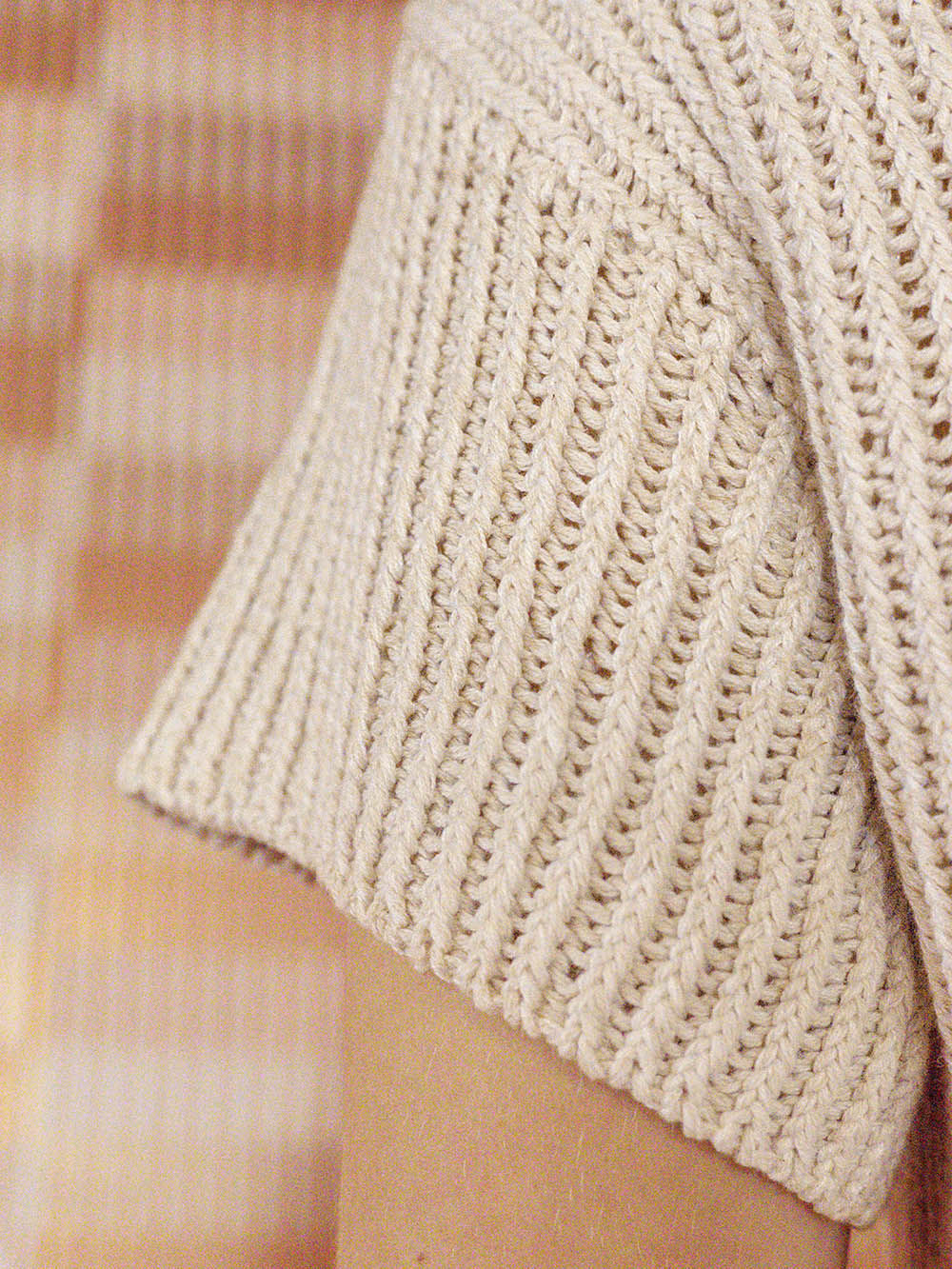 T-skjorten strikkes ovenfra og ned i ribb i Line.