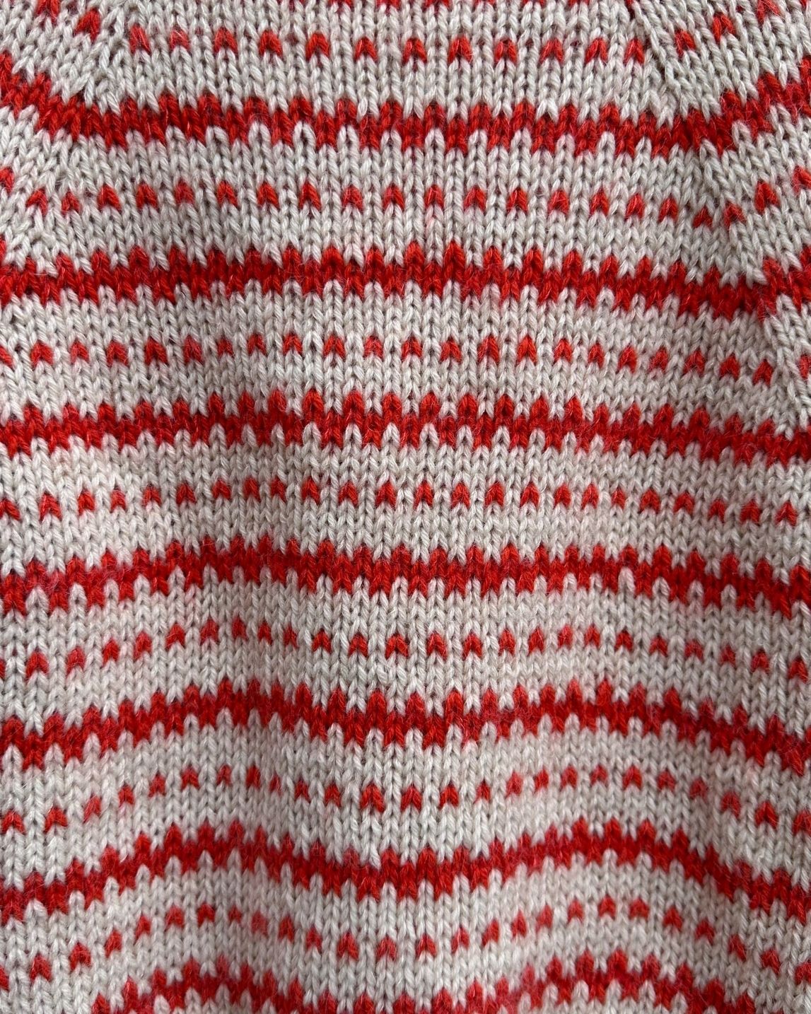 | Teknikk: | Mønsterstrikk, Ovenfra og ned, Ragland |