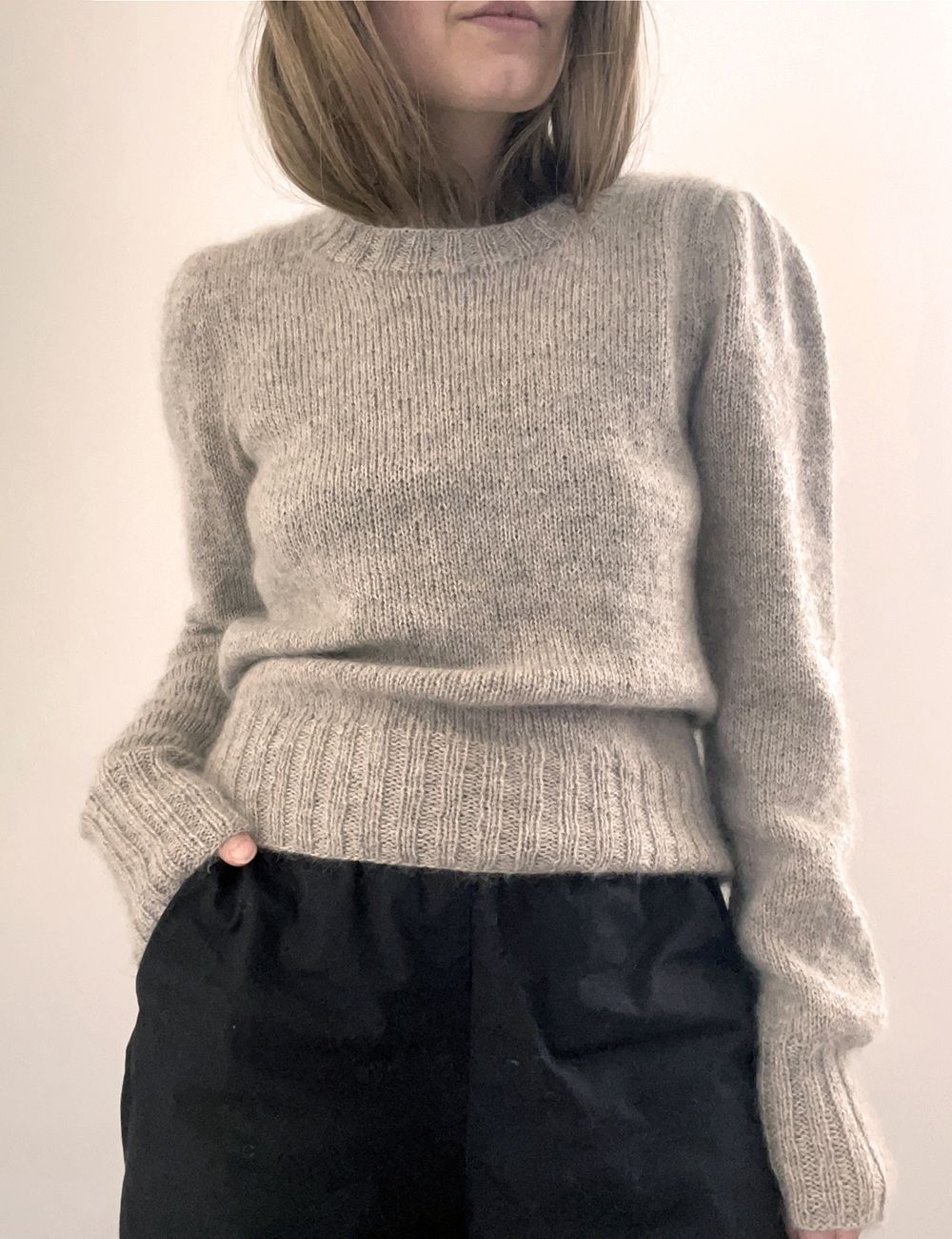 Gabi blusen med puffermer passer til det meste! Den er enkel å strikke fordi alt strikkes i ett stykke og du slipper å sy noe sammen. Gabi strikkes ovenfra og puffermene er ikke store og vide – de har kun et delikat lite puff!