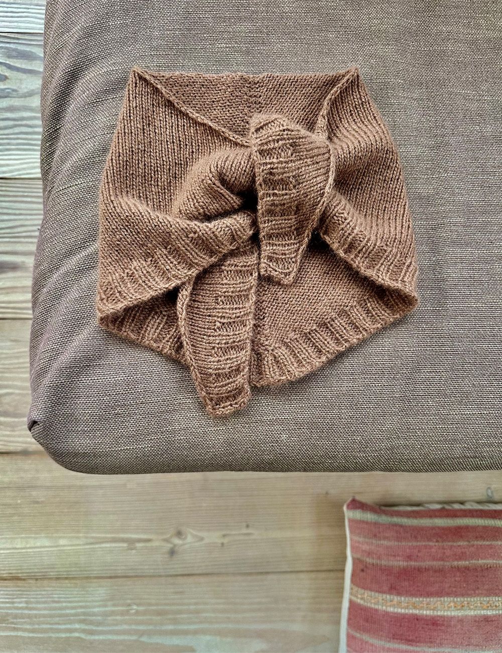 Note Bandana er et glattstrikket skjerf med en kant i dobbelribb. Skjerfet kan strikkes i den størrelsen du ønsker, og det får en pen finish på begge sider.