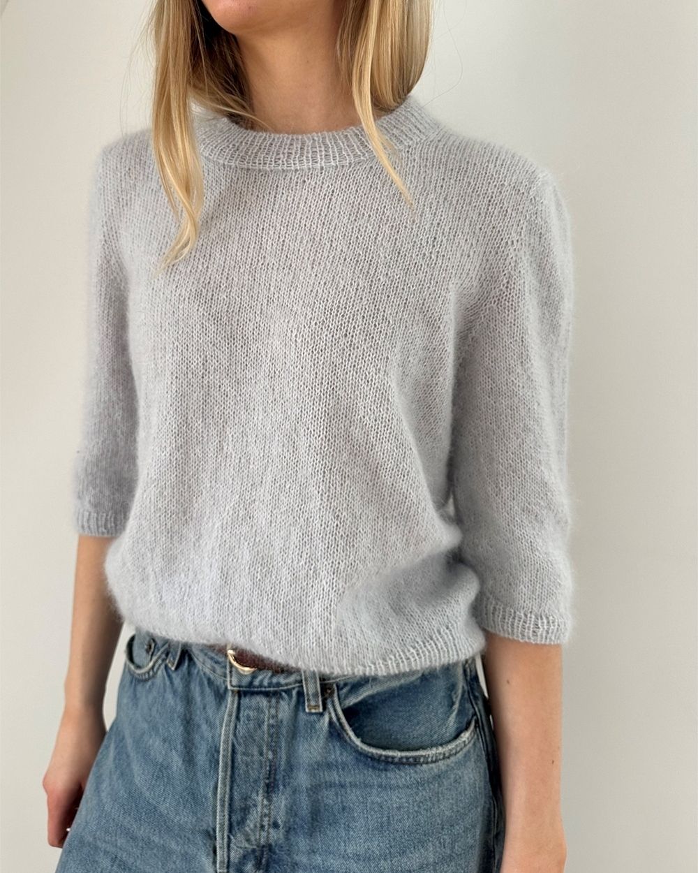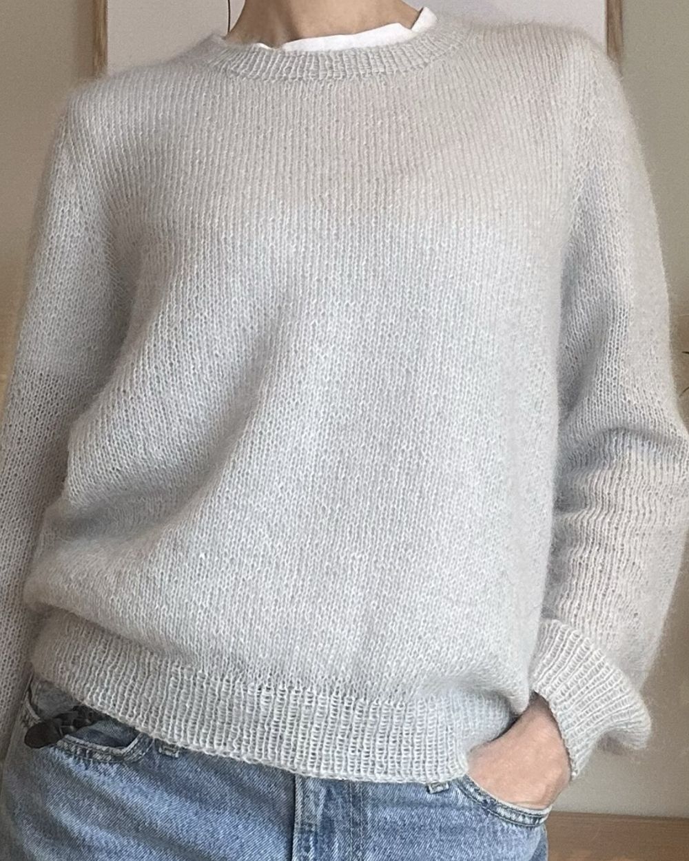 Garn og garnmengde, alpakka og mohair (lys blå)