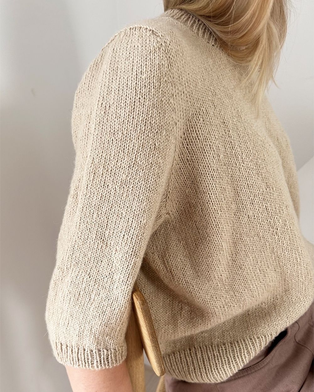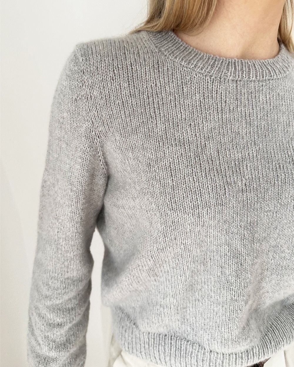 Maria Blouse er et ekte basisplagg i garderoben. Den har en fin fasong med en relativt høy ermekuppel som sitter godt på skulderen. Blusen strikkes ovenfra og alt strikkes som ett stykke, formet underveis med vendepinner og økninger. Oppskriften inneholder forklaringer til både korte og lange ermer.