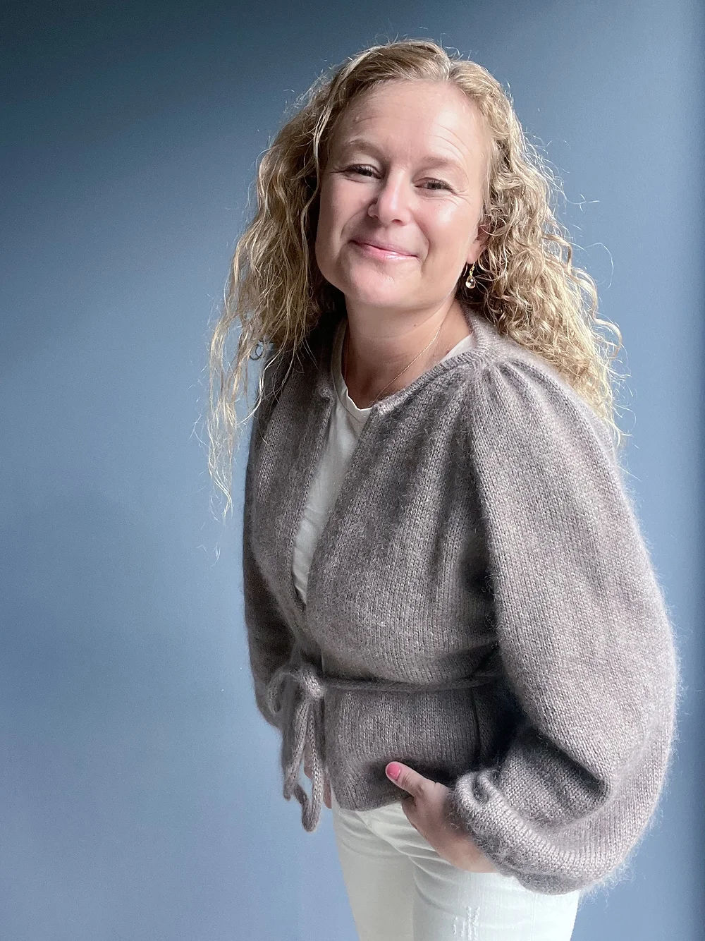 Milly Cardi er en allsidig jakke som strikkes ovenfra og ned, og som er ideell for kalde dager. Den er strikket i glattstrikk med puffermer, og avsluttes med dobbel brettede kanter på både bol og ermer, noe som gir et rent og elegant uttrykk.