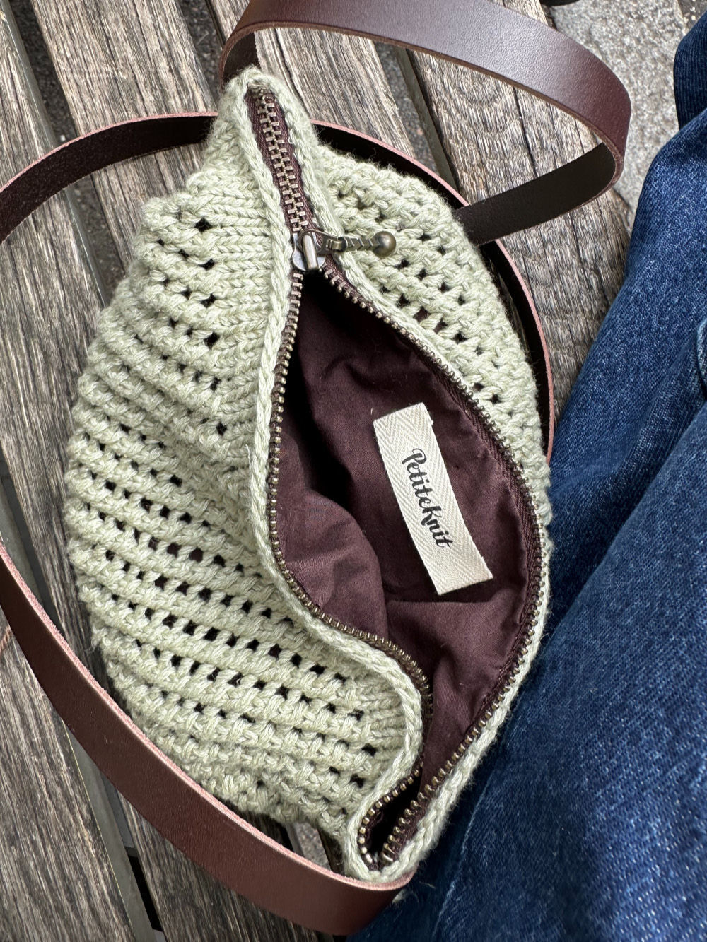 Pung: 50 (50) g Tynn Line fra Sandnes Garn (50 g = 220 m) (strikkes med tre tråder)