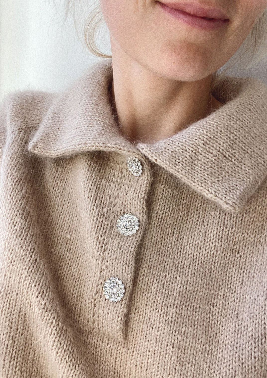 Materialer: 200 (200-250) 250 (250) 250 (300) 300 (350) 350-400 g Sunday fra Sandnes Garn (50 g = 235 m) strikkes sammen med 100-125 (125) 125 (125) 125-150 (150-175) 175 (200) 200-225 g Tynn Silk Mohair fra Sandnes Garn (25 g = 212 m)