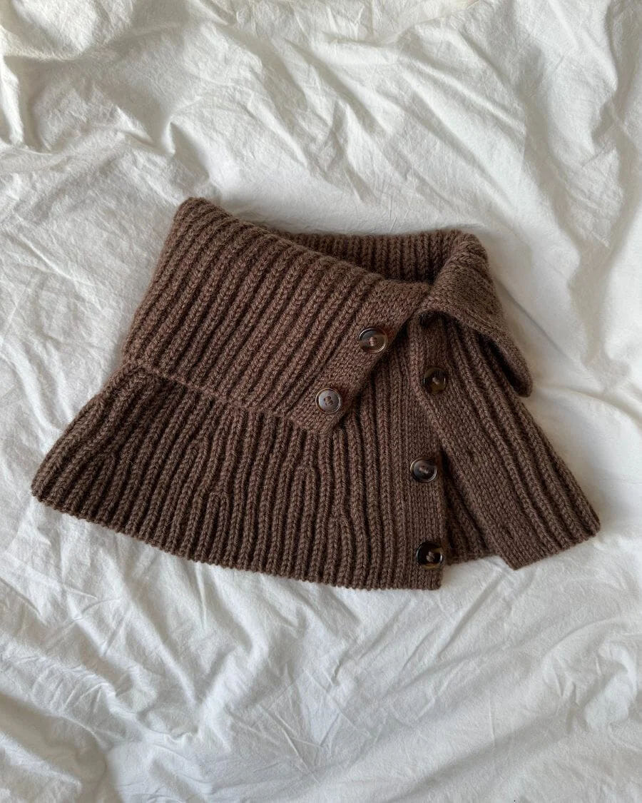 November Neck bæres med en brett, og de to øverste knappene og to nederste knappene uknappede. Den minste størrelsen anbefales dersom du ikke har så brede skuldre, mens den største størrelsen anbefales dersom du har bredere skuldre. Halsens omkrets er den samme i de to størrelsene, mens lengden og vidden på den nederste delen varierer.