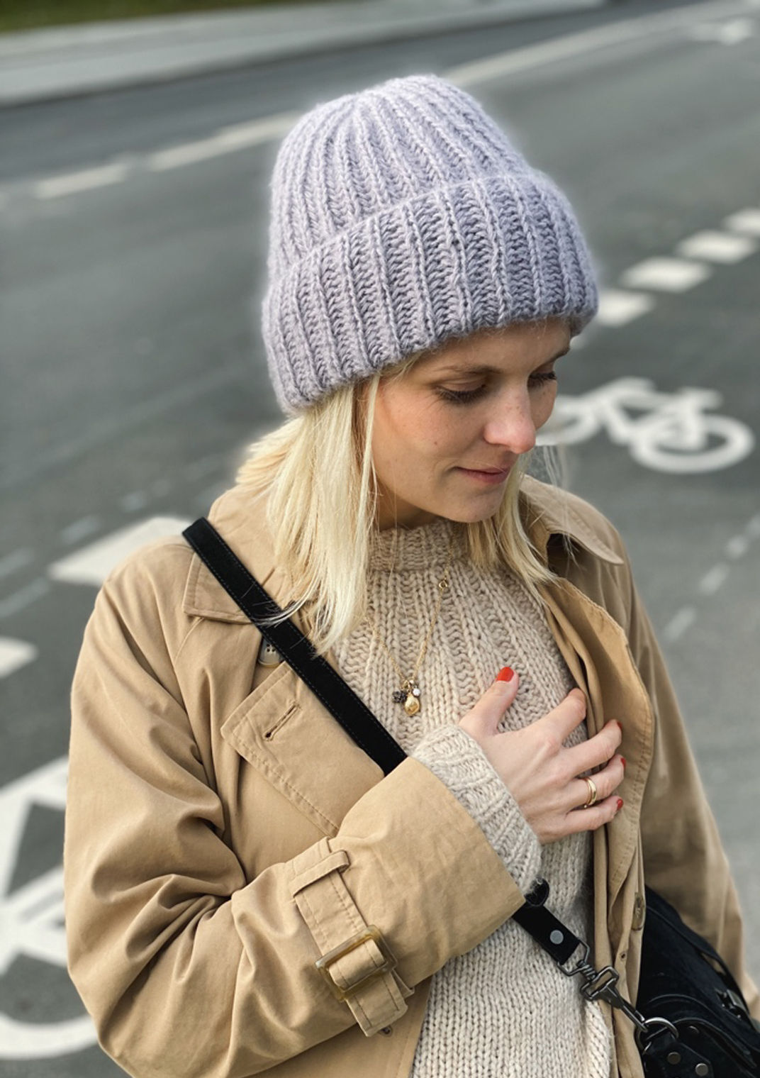 Veiledende pinner: Rundpinne 4,5 mm (40 cm), strømpepinner 4,5 mm (med mindre det strikkes med Magic Loop-teknikk)