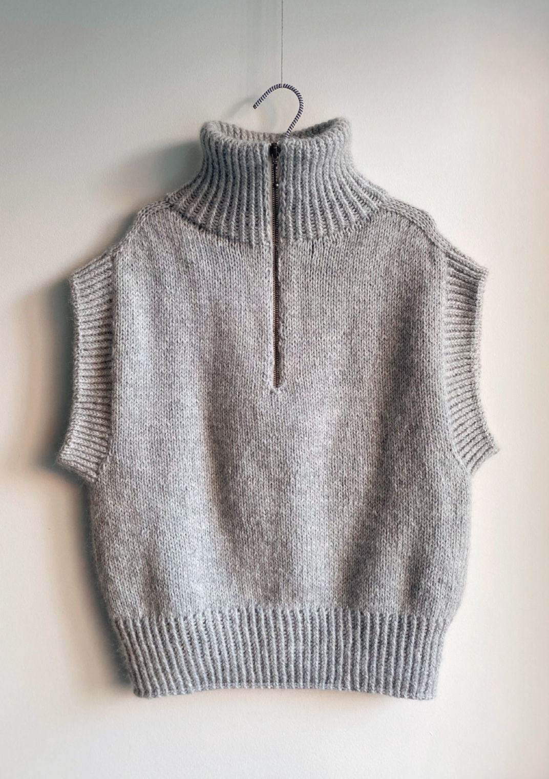 Zipper Slipover strikkes ovenfra og ned. Halskanten strikkes i vrangbord som legges dobbelt og strikkes ned. Deretter strikkes skuldrene med økninger på både rett- og vrangside, og det strikkes vendepinner for å danne halsutskjæring. Forstykkenes masker settes til hvile mens bakstykkets strikkes. Deretter strikkes forstykkene, og til slutt samles forstykker og bakstykke for å danne bolen, som strikkes rett ned. Det strikkes en vrangbordkant i ermehullet ut fra opplukkede masker. Til slutt strikkes belegg til glidelåsen ut fra hvilende masker, slik at glidelåsen også fremstår pen fra vrangsiden. Glidelåsen monteres til slutt ved å sy den inn mellom de to strikkede lagene.