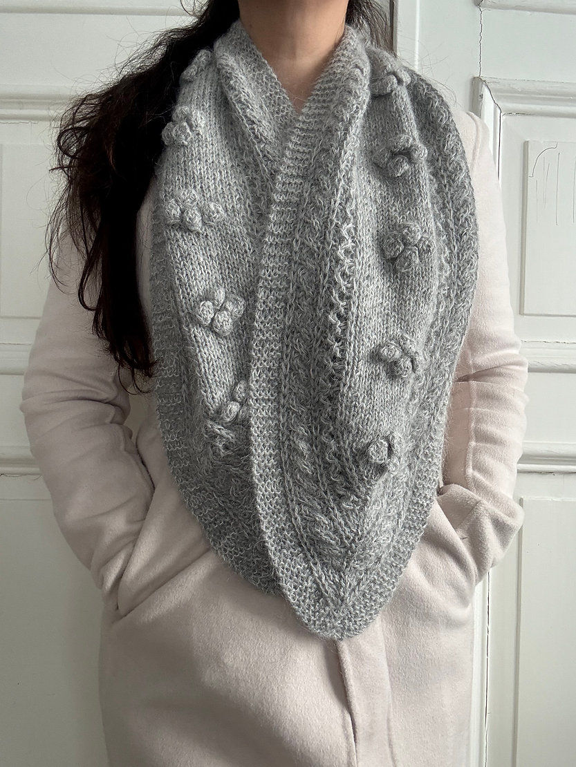 Tezzie skjerf er et strukturstrikket skjerf med midtparti i boblestrikk. Det strikkes fra tverrsiden etter diagram. Skjerfet er raskt og morsom å strikke og pynter opp vinterjakken med feminine detaljer.