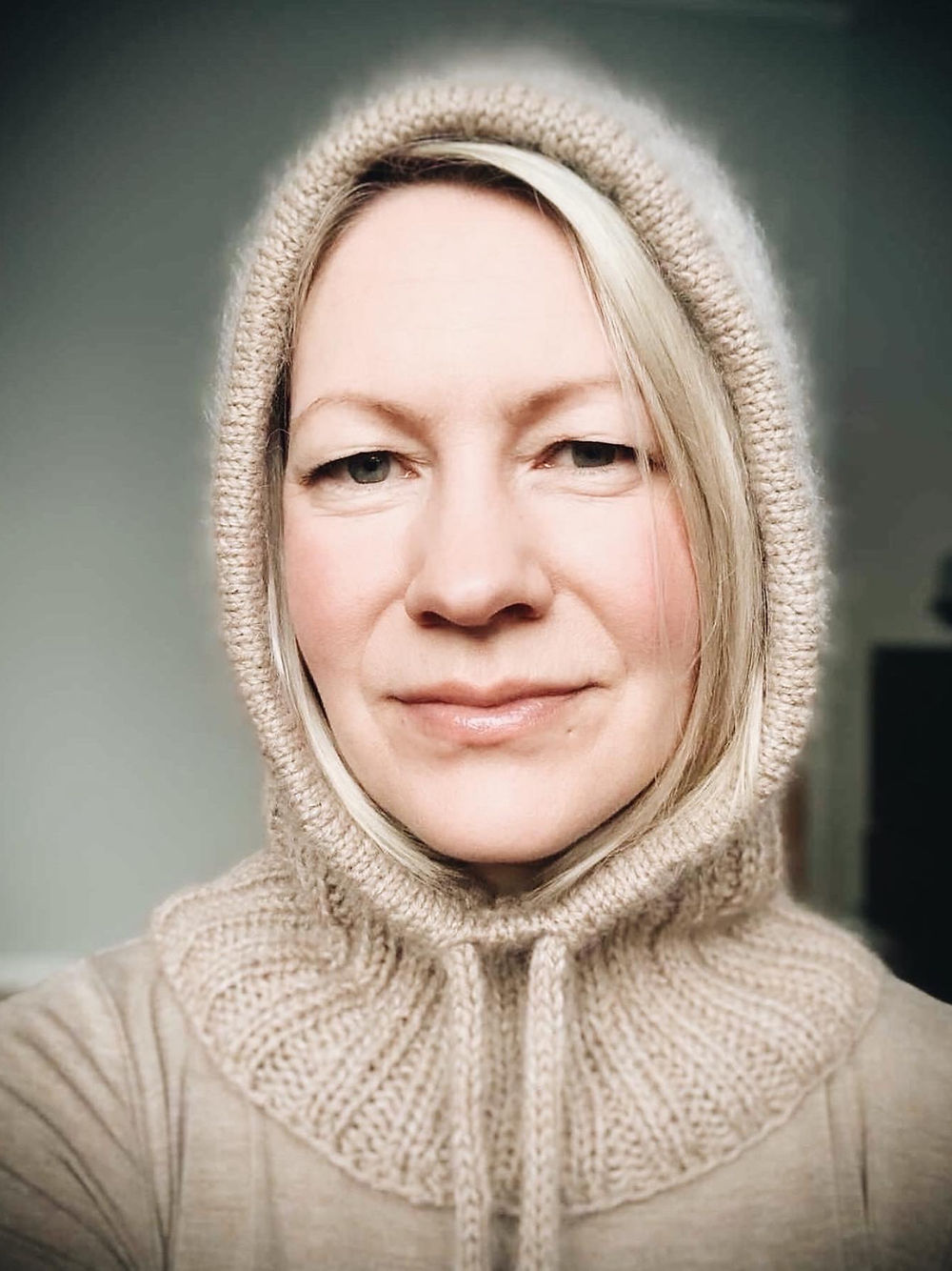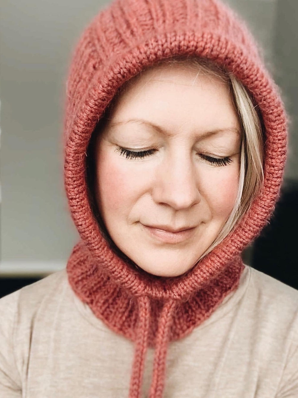 Hoodien strikkes ovenfra og ned i dobbel ribb. Først strikkes en firkant, som tilsvarer toppen av hode. Deretter plukkes det opp masker langs begge sidene av denne firkanten, og hoodien strikkes deretter rett ned i dobbel @ribb. Til slutt samles den under haken for så å strikkes rundt. Om en ønsker strikkes luen med god hals som brer seg utover skulderpartiet.