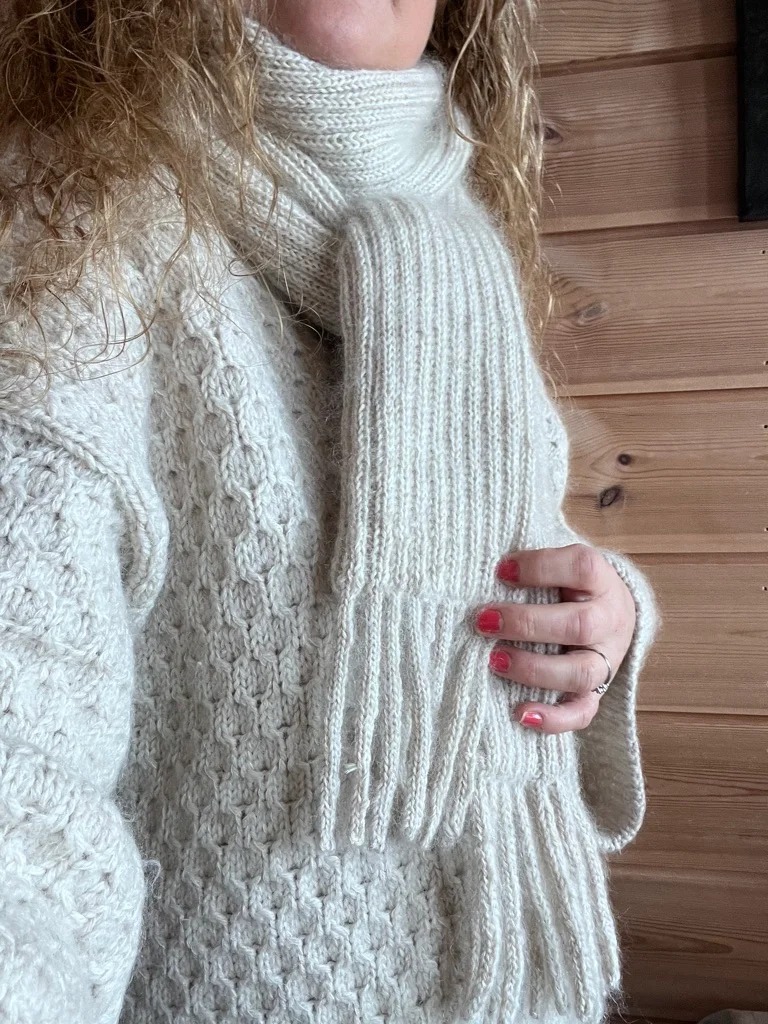 Vill i skjerfet er et strikkeprosjekt som strikkes i Sunday og Tynn silk Mohair i 2 r og 2 vr. Sunday gir prosjektet en fin struktur og Tynn silk Mohair legger til en myk og luksuriøs tekstur. Dette gir et lekkert og varmt resultat. Dette prosjektet gir deg ikke bare et flott ferdig produkt, men også en fin mulighet til å utforske og kombinere ulike teksturer og garn.