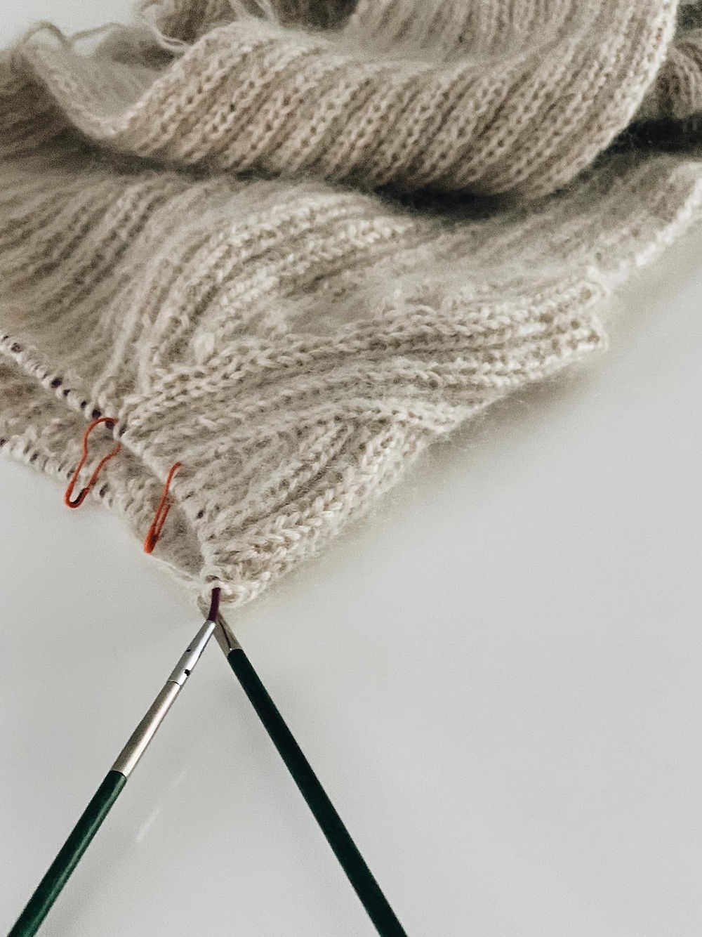 Helt til slutt strikkes det opp belegg til glidelåsen ut fra hvilende masker, da vil glidelåsen også fremstå pen fra vrangsiden. Glidelåsen monteres til slutt for hånd.
