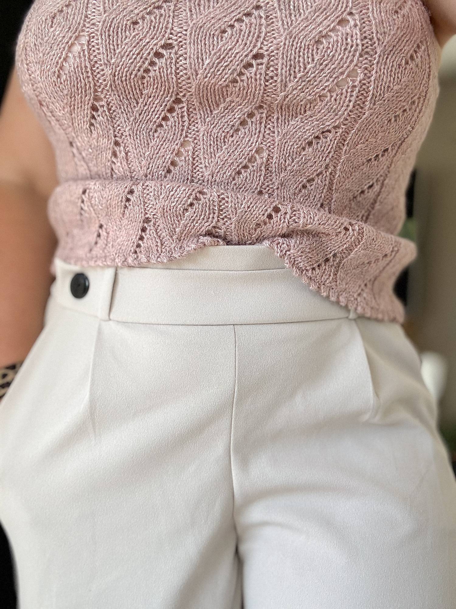 Wavelet-top er en feminin og elegant sommertopp med et vakkert strukturmønster som dekker hele plagget. Toppen har delikate picotkanter og stilrene i-cordstropper som gir et sofistikert uttrykk. Den strikkes ovenfra og ned, slik at du enkelt kan justere lengden etter egen smak og kropp.