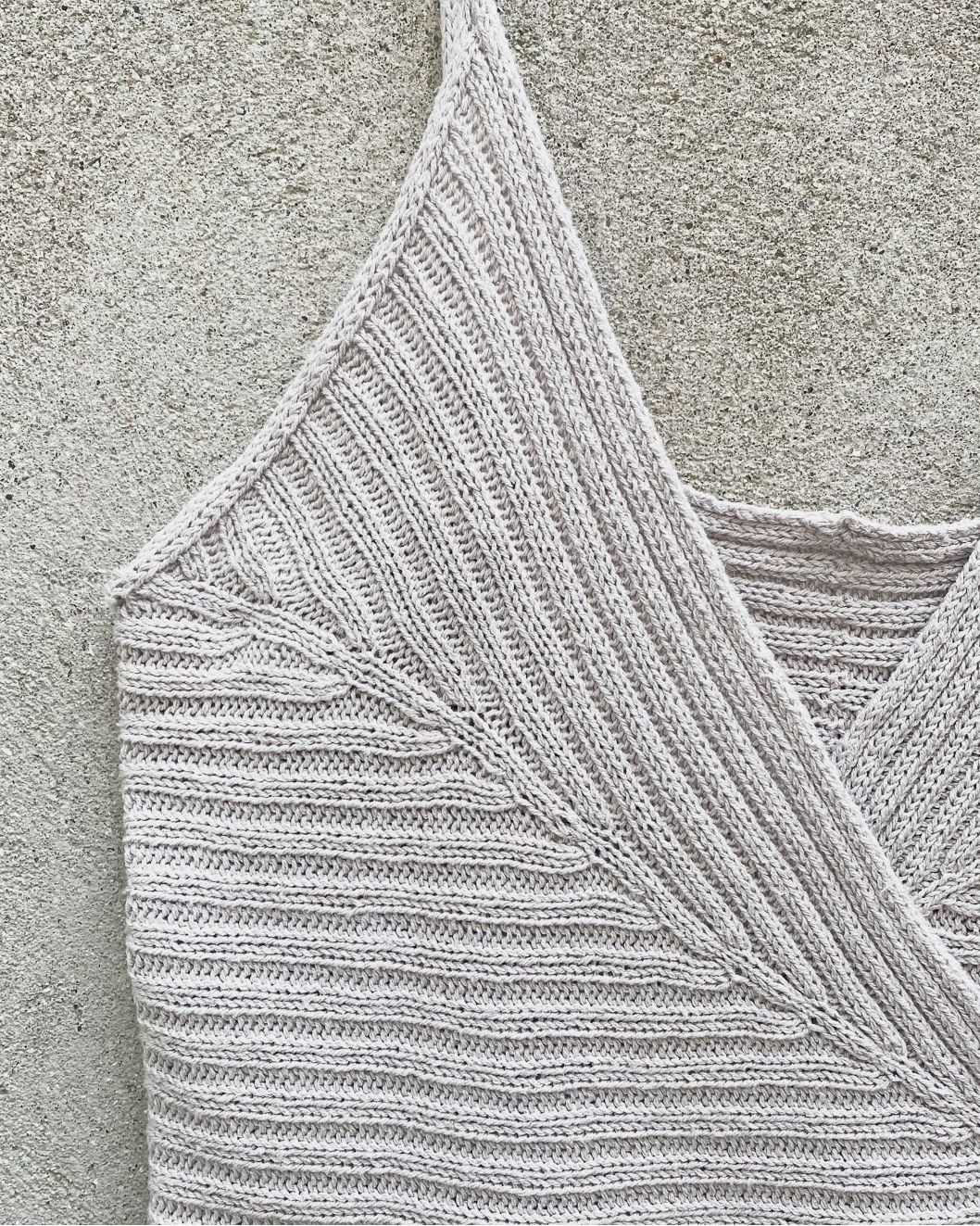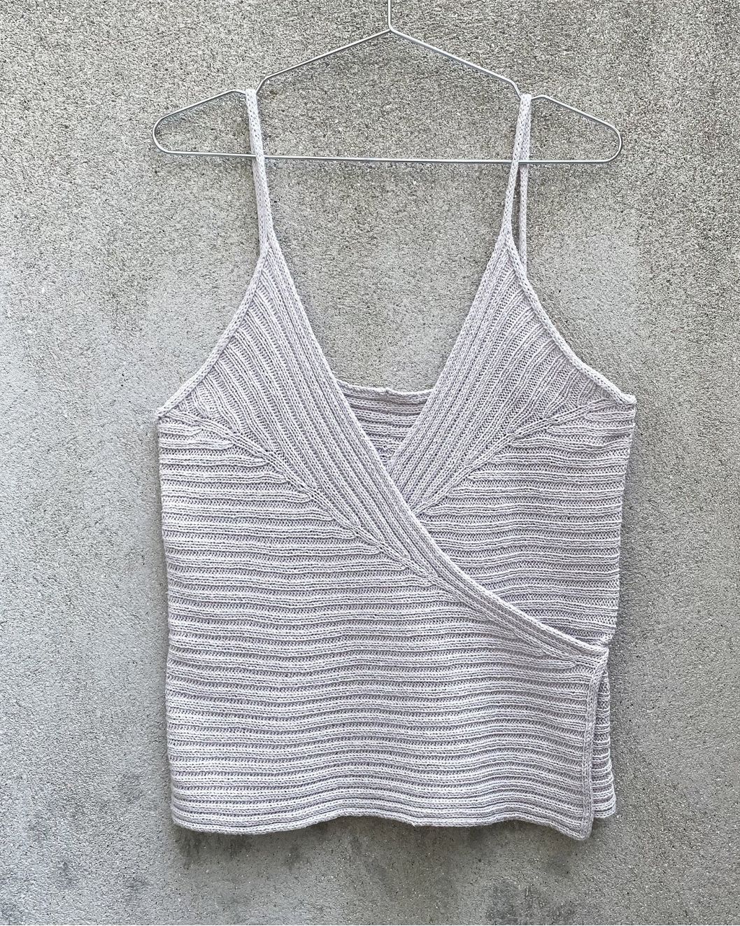 Yoko Top er en elegant omslagstopp i ribb. Toppen strikkes sidelengs i to speilvendte halvdeler med økninger, som former toppens bryster. Toppen avsluttes med I-cordkanter, -stropper og -bindebånd.