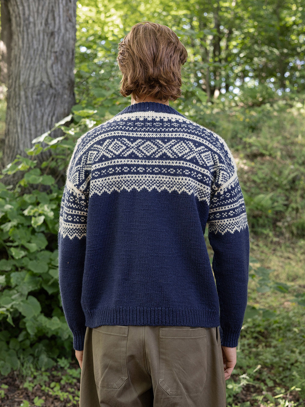 Genseren kan strikkes ovenfra og ned eller nedenfra og opp. Det strikkes mønster etter diagram frem og tilbake på for- og bakstykket. Resten av genseren strikkes rundt i bunnfarge. Ermene strikkes rundt med mønster etter diagram helt øverst.