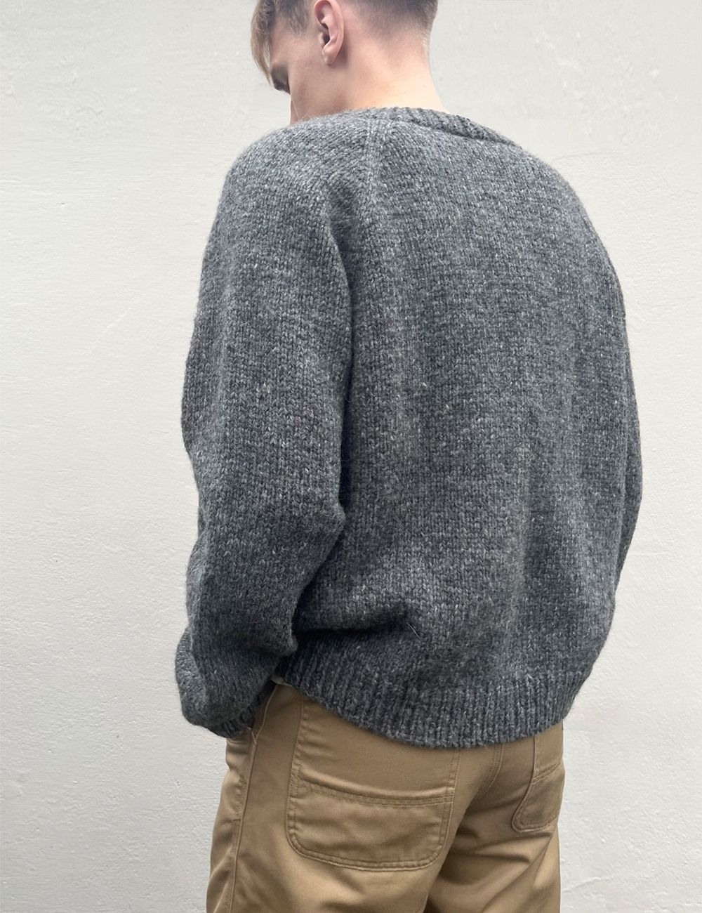 Foundation Cardigan Man er en raglanjakke som er lett å strikke. Foundation Cardigan Man strikkes ovenfra og ned. Den har vendepinner slik at halsutringningen blir høyere bak enn foran. Forkantene og halskanten strikkes til slutt.