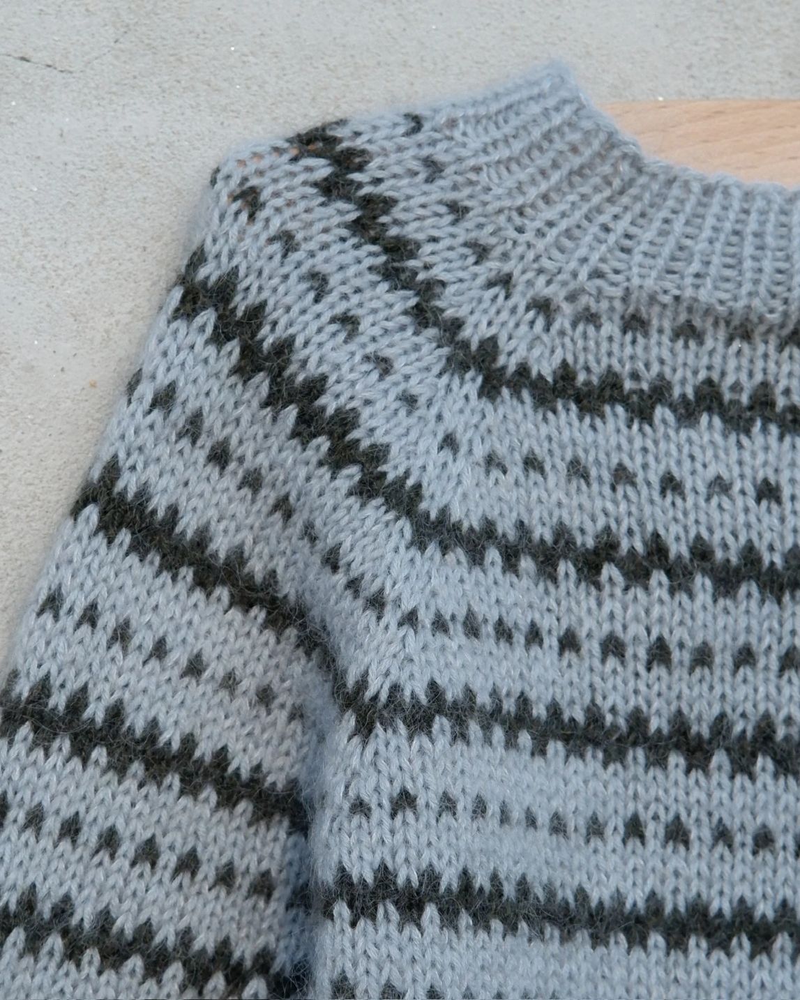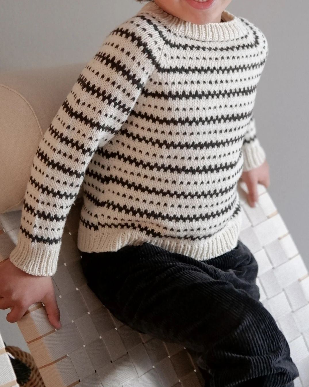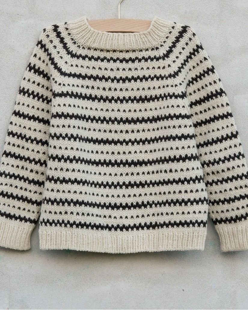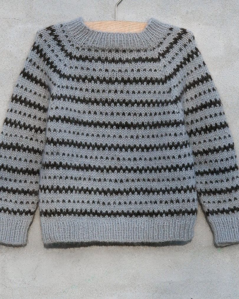 Katholt Sweateren er en glattstrikket raglangenser som er strikket i stripemønster etter diagrammer.