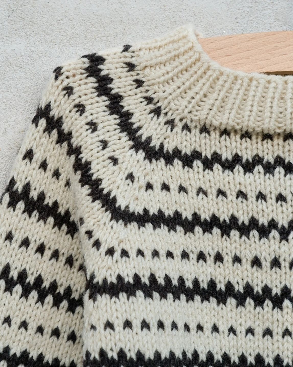 | Teknikk: | Mønsterstrikk, Ovenfra og ned, Ragland |