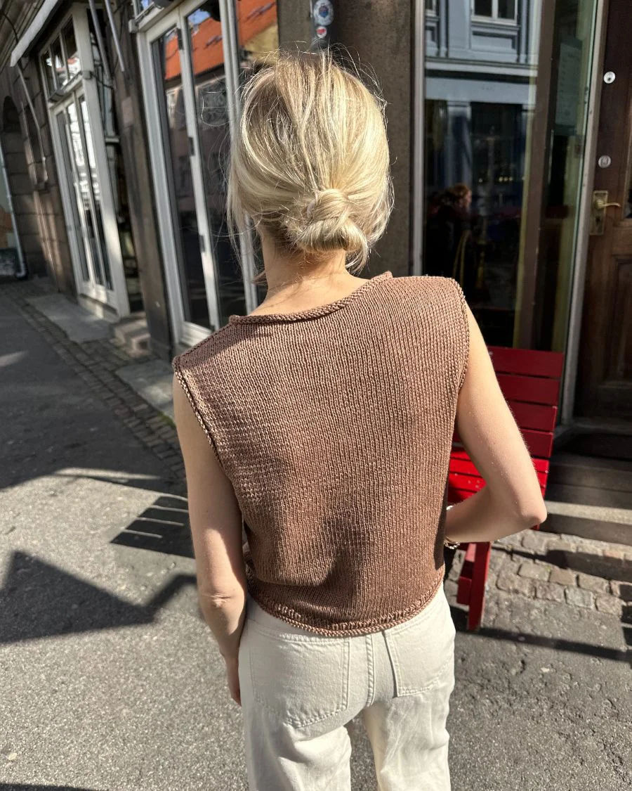 Cloud Top strikkes ovenfra og ned. Først strikkes øverste del av bakstykket frem og tilbake, hvor helling av skuldrene formes med forkortede pinner (vendepinner). Deretter strikkes skuldrene hver for seg frem og tilbake, disse også med vendepinner. Skuldrene samles foran for å danne forstykket. Forstykket og bakstykket samles deretter for å danne bolen som strikkes rundt på rundpinne. Langs halsåpningen og ermehullet plukkes det opp masker og det strikkes en glattstrikkede kant.