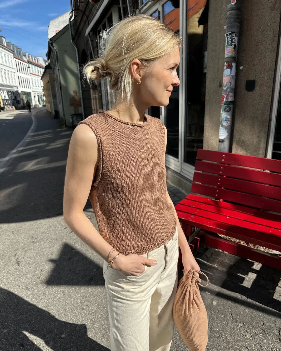 Cloud Top bør ha en bevegelsesvidde (positive ease) på omtrent 2-5 cm. Størrelsene XXS (XS) S (M) L (XL) 2XL (3XL) 4XL (5XL) svarer til et bystemål, målt på egen kropp, på 75-80 (80-85) 85-90 (90-95) 95-100 (100-110) 110-120 (120-130) 130-140 (140-150) cm. Målene på den ferdige topp er angitt på forsiden av oppskriften. Mål deg selv før du går i gang med å strikke, for å vurdere hvilken størrelse som vil passe deg best. Dersom du f.eks. måler 90 cm rundt om bysten (eller det bredeste sted på din overkropp), bør du strikke str. S. En topp i str. S har overvidden 92 cm og vil i nevnte eksempel gi en bevegelsesvidde (positive ease) på 2 cm.