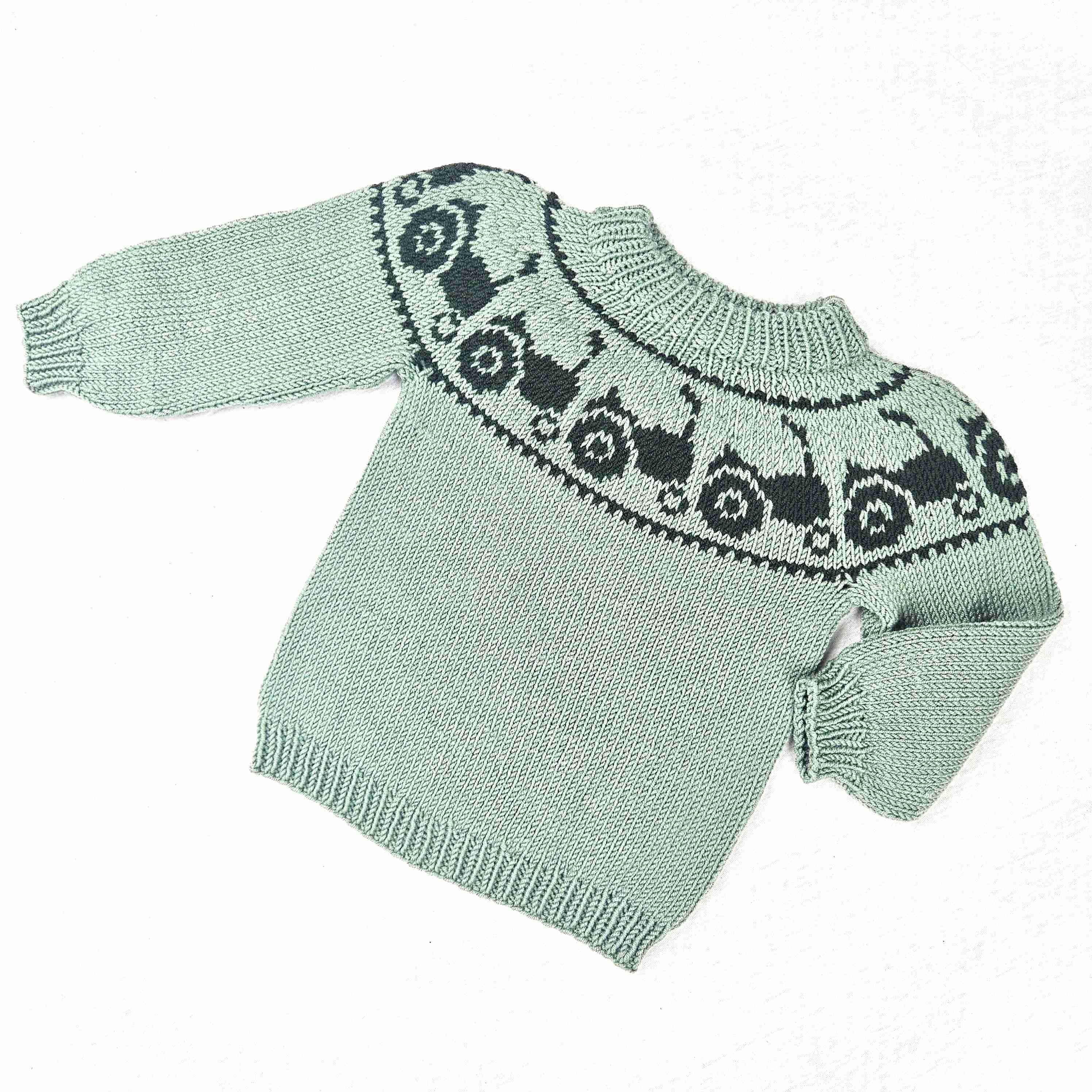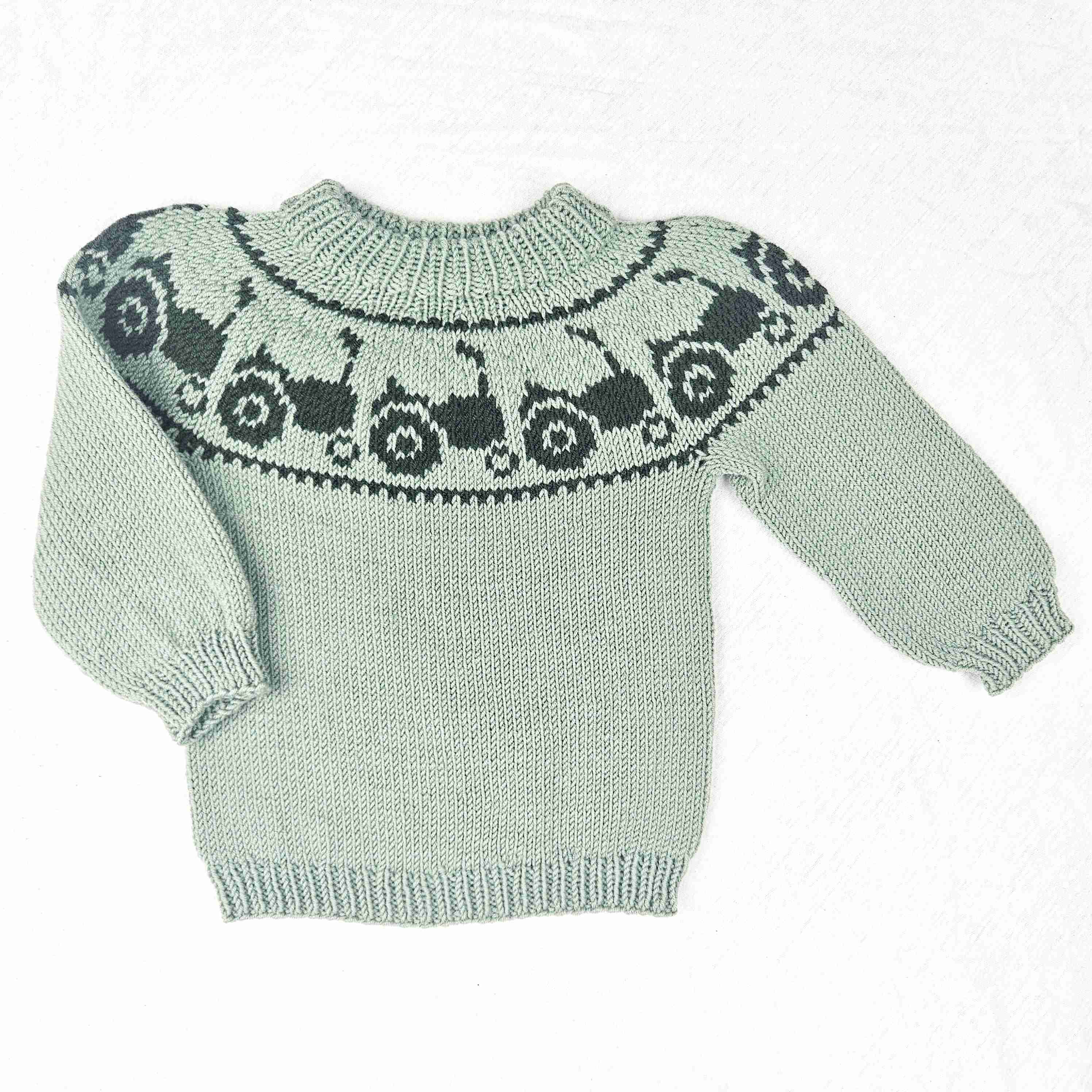 Retro traktorgenser er en nostalgisk og morsom barnegenser med traktormotiv på bærestykket. Genseren strikkes ovenfra og ned i Sandnes Double Sunday – et mykt og slitesterkt garn som gjør den like komfortabel som den er sjarmerende