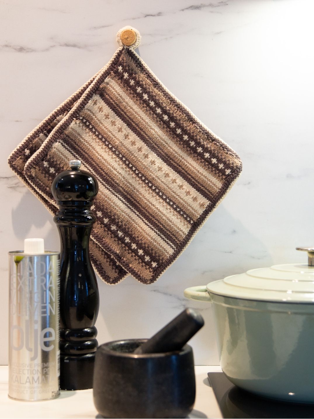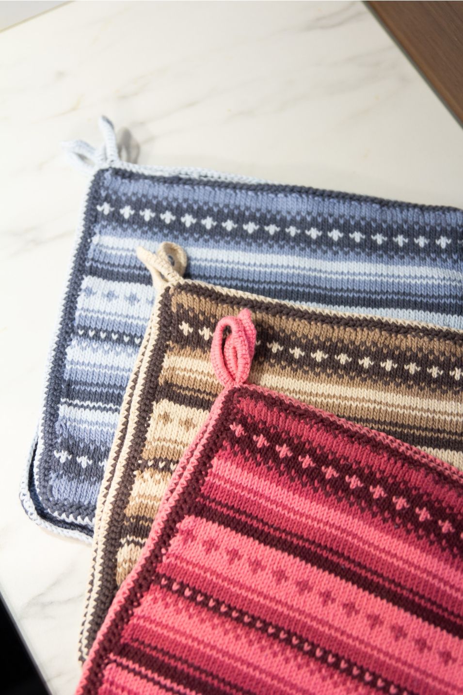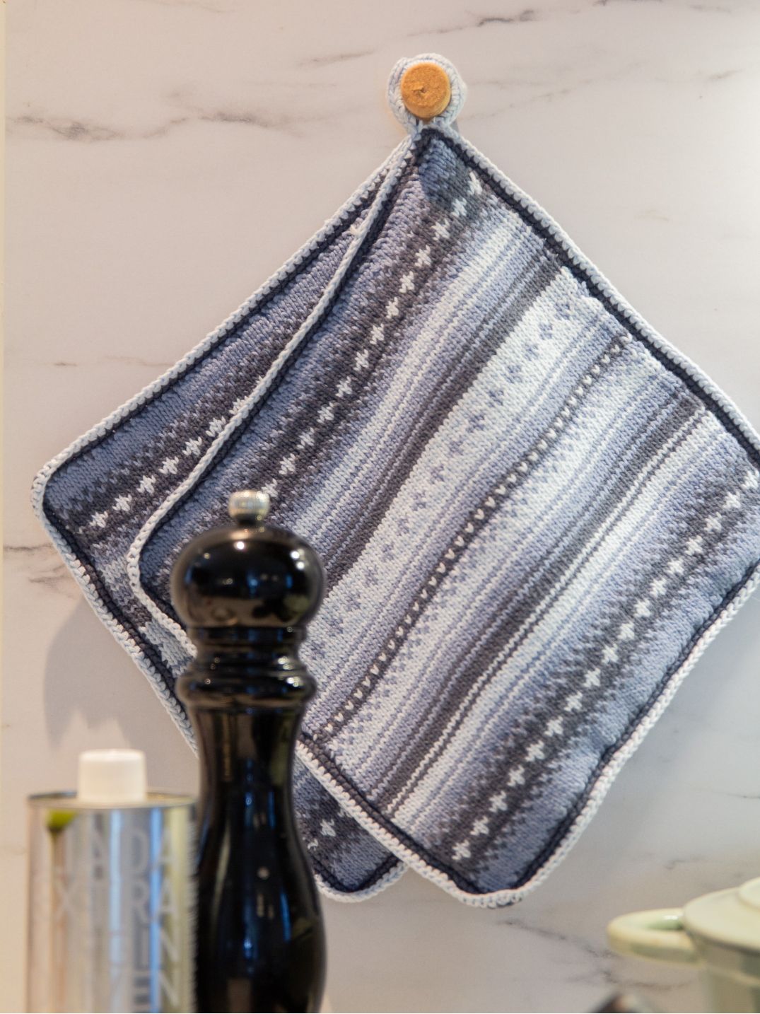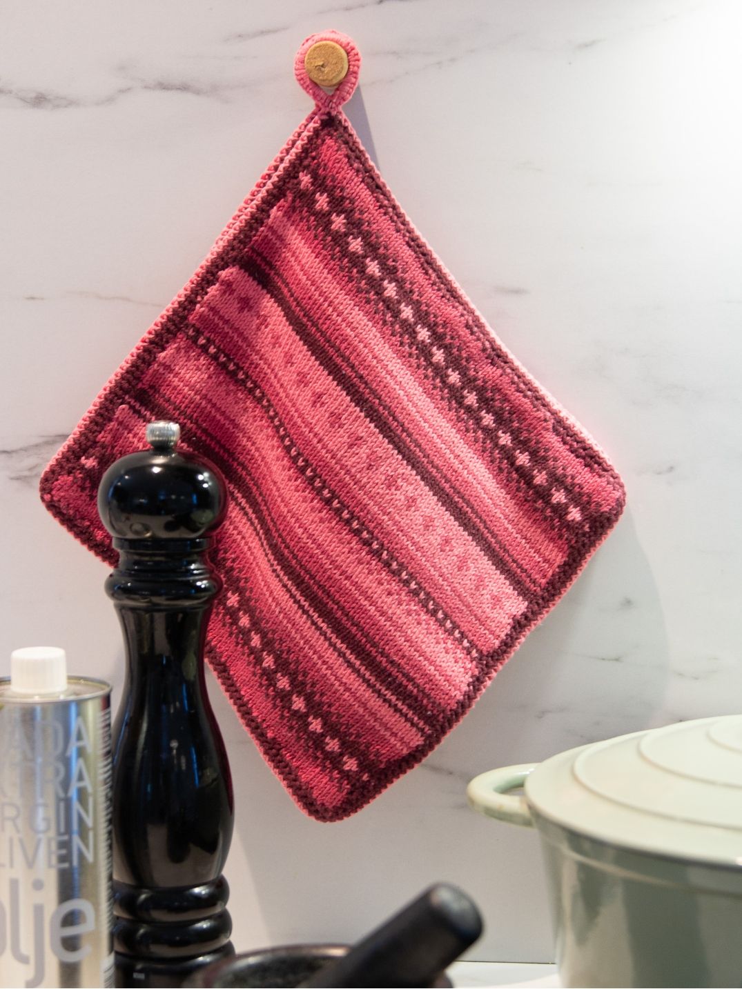 Tanken min med dette designet er at du får lyst til å strikke et par grytekluter til deg selv eller noen som fortjener oppmerksomhet.