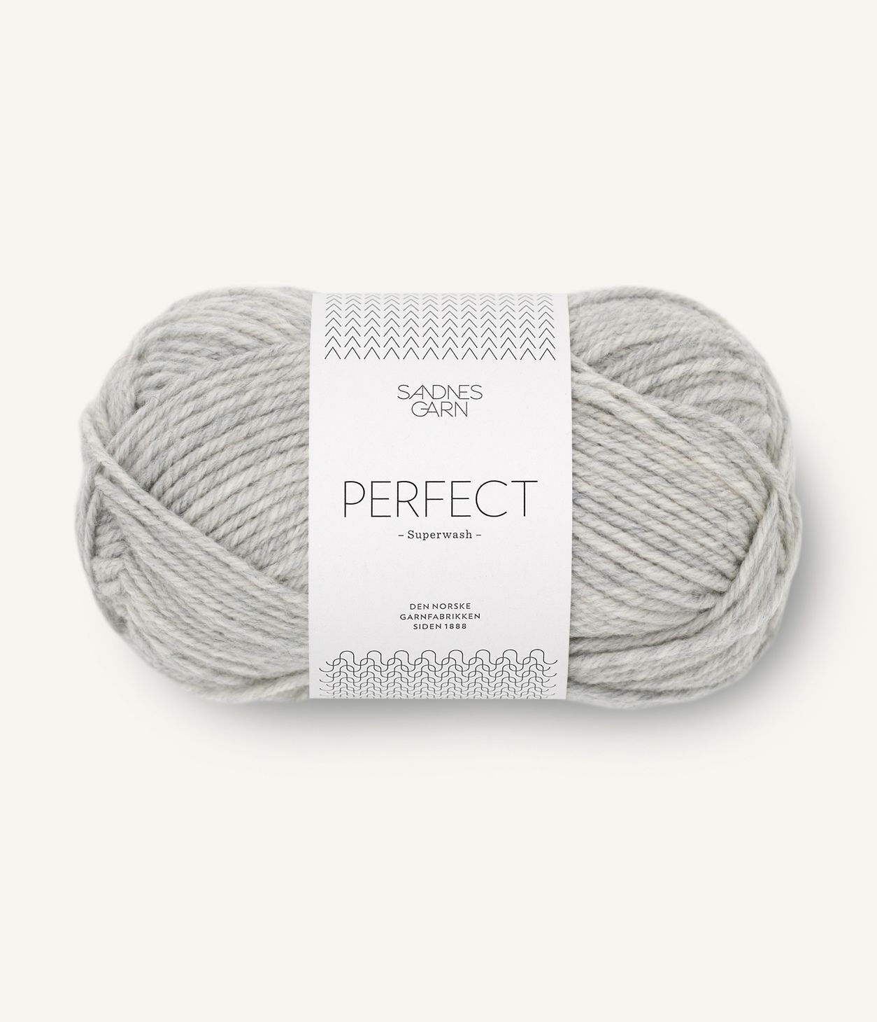 Perfect er et mykt, slitesterkt bruksgarn som er forsterket med nylon, og egner seg ekstra bra til både sokker og tøfler, og mer myke strikk som votter, luer og andre bruksplagg som skal tåle røffere bruk. Gratis oppskrift på strømper på innsiden av banderolen. Superwash-behandlet.