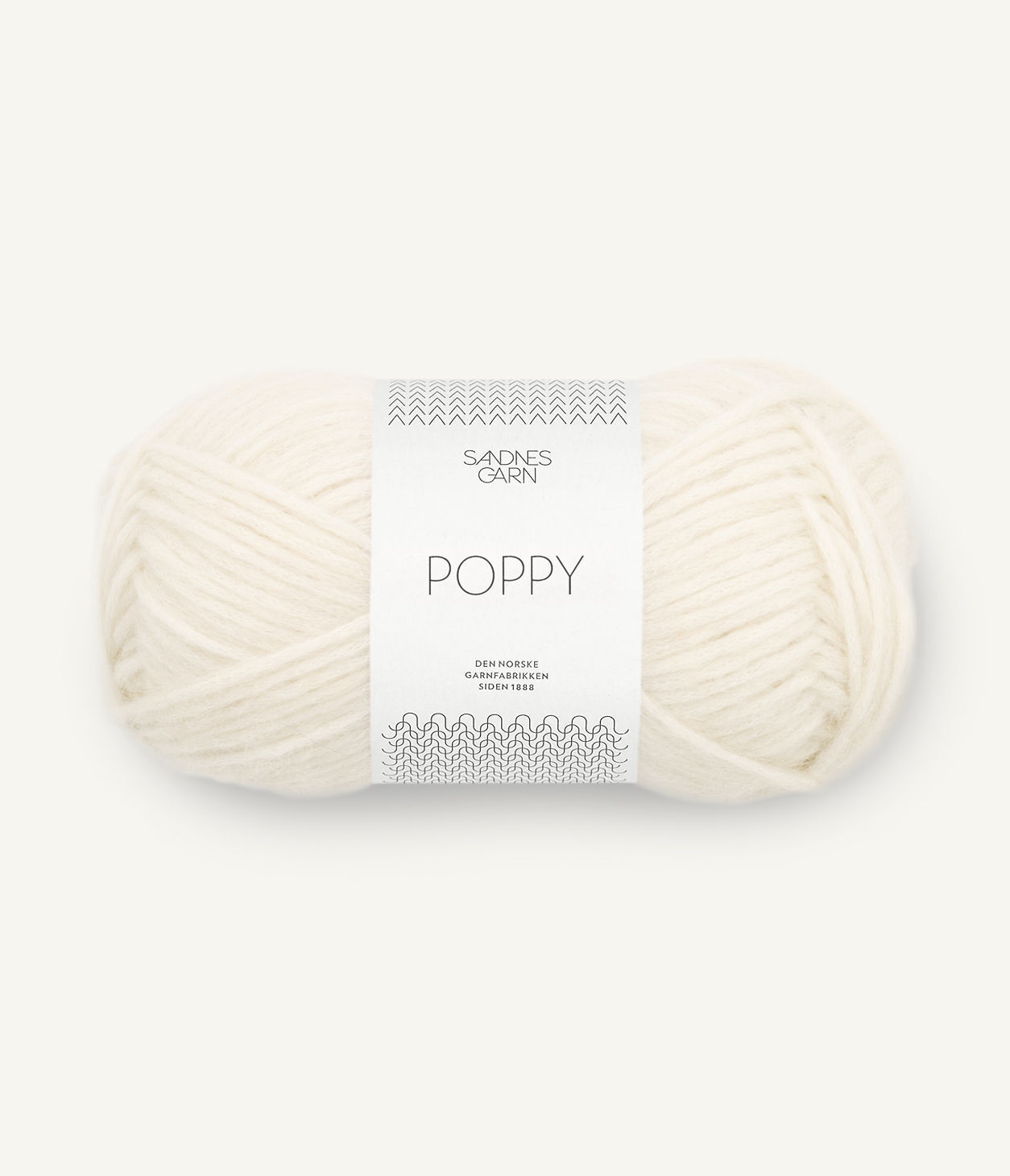 Poppy er veldig lik Kos, men består av alpakkafiber som sammen med ull blir blåst inn i en bomullsstrømpe istedenfor nylonstrømpe. Dette gir et mykt, lett og luftig garn. 50% superfine alpakka, 35% bomull, 15% merinoull.
