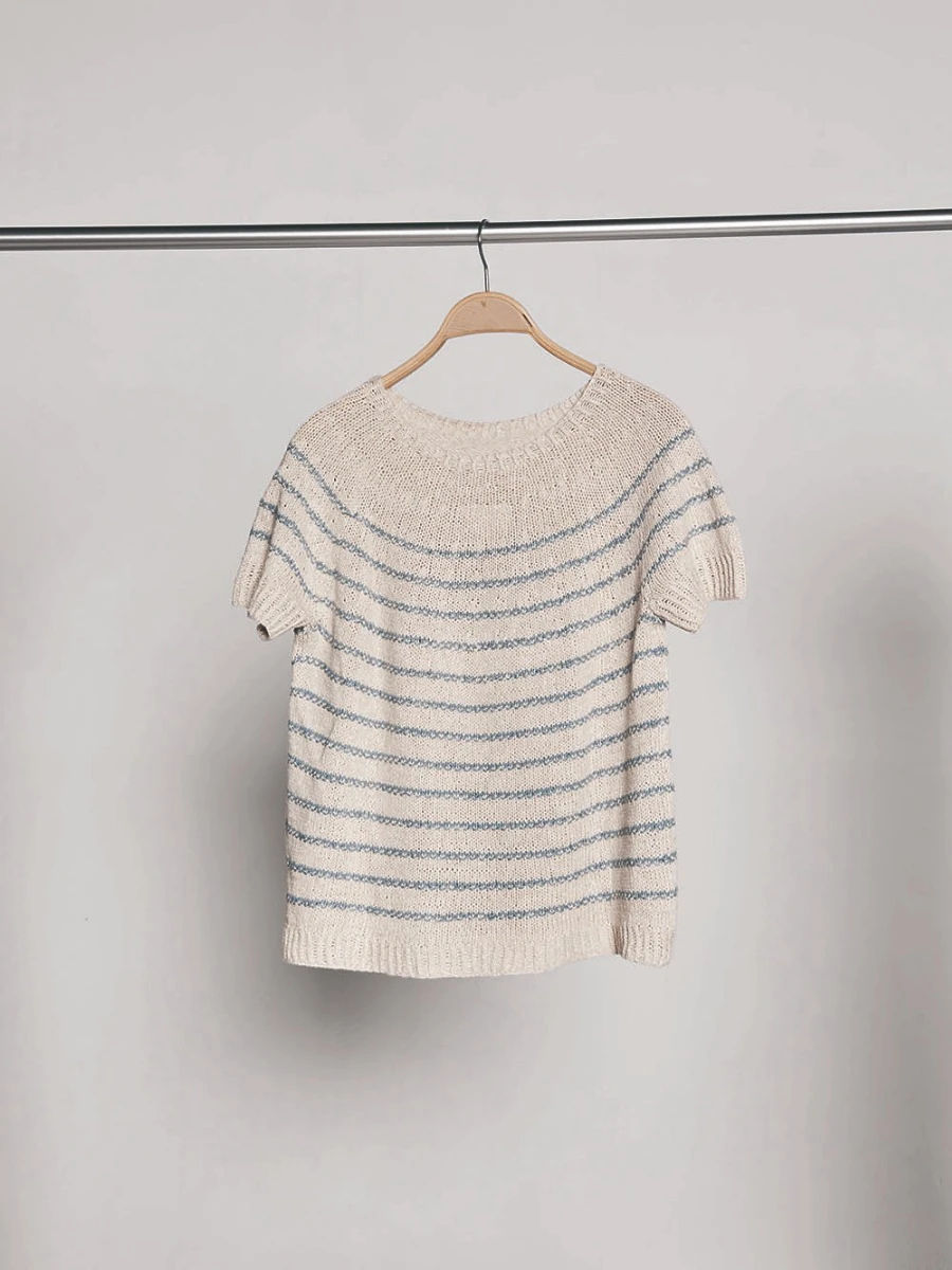 River Topp er en elegant dametopp med vevemønster og rundt bærestykke, strikket i det populære sommergarnet Sandnes Line. Den delikate blandingen av bomull, viskose og lin gir et vakkert fall og en behagelig svalhet – perfekt til varme sommerdager, på reise eller som et stilig hverdagsplagg. Toppen strikkes nedenfra og opp og er et givende prosjekt for viderekomne strikkere. Last ned den gratis strikkeoppskriften her og gi sommergarderoben et håndlaget løft!