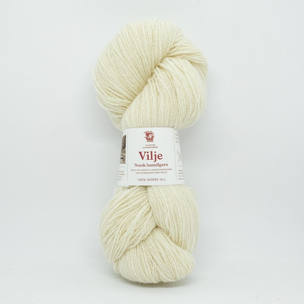 Vilje Lammullgarn Ubleket Hvit