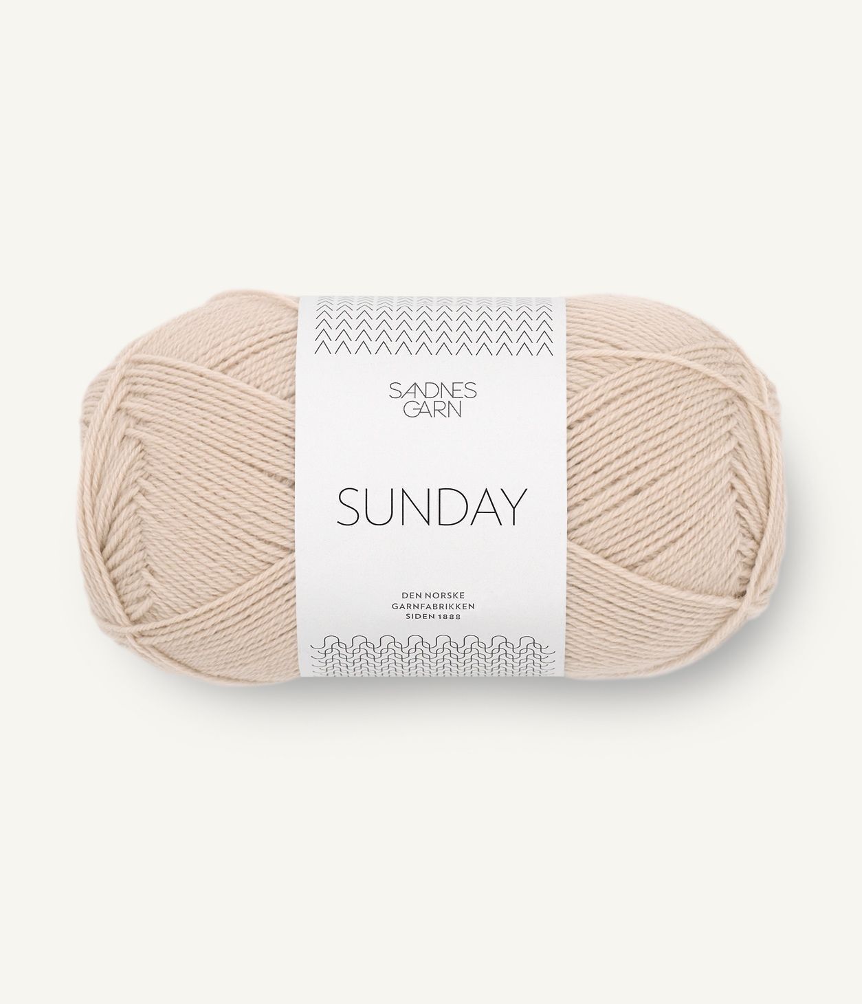 Sunday er den tynneste varianten av 100 % merinoull fra Sandnes Garn, og er det perfekte basisgarnet: et tynt ikke-superwash behandlet garn som kan strikkes med enkel og dobbel tråd, eller med Tynn Silk Mohair.