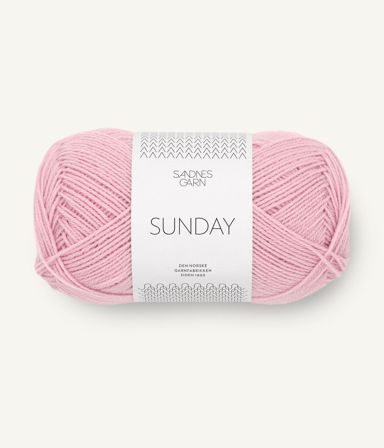 Sunday er den tynneste varianten av 100 % merinoull fra Sandnes Garn, og er det perfekte basisgarnet: et tynt ikke-superwash behandlet garn som kan strikkes med enkel og dobbel tråd, eller med Tynn Silk Mohair.